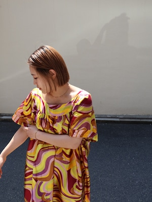 70s satin marble middle dress【1775】