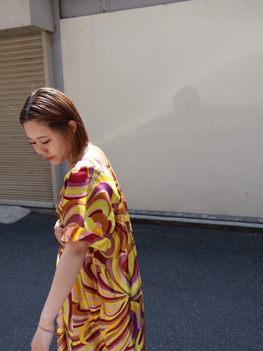 太陽の光を集めるサテン地のドレス。