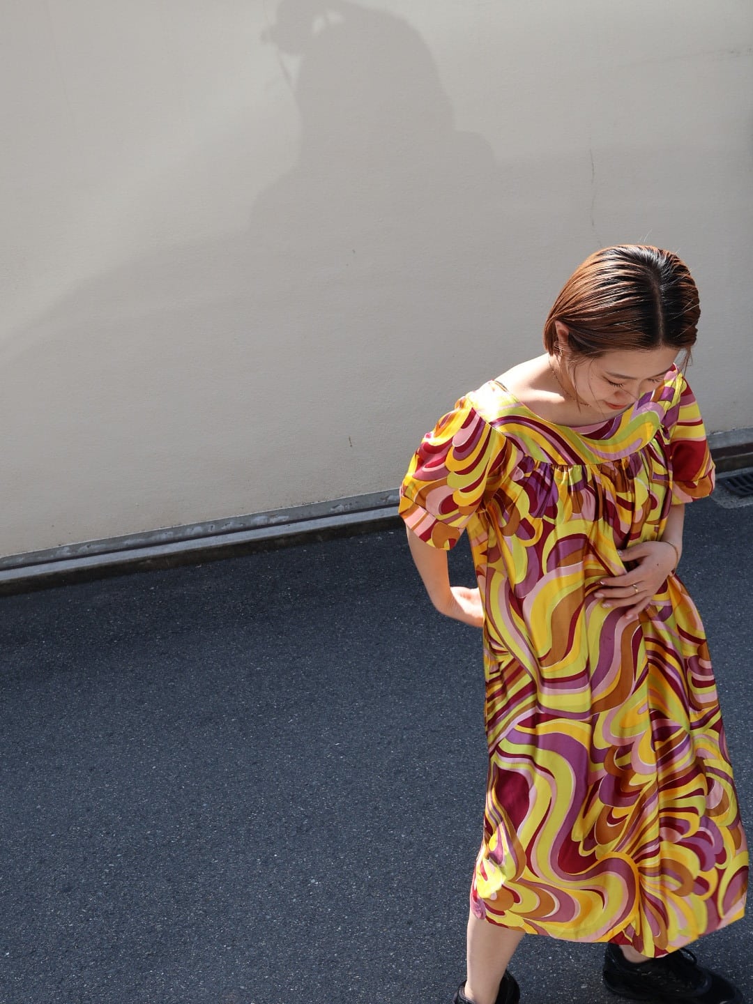 軽やかなミドル丈。スニーカー合わせでシティライクな着こなしもおすすめ。