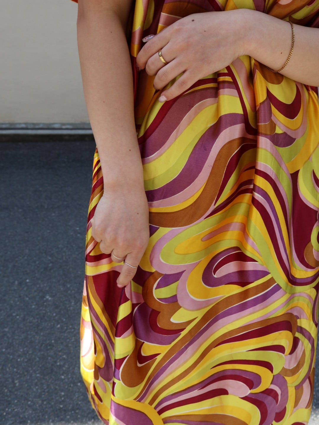 〜70年代 マーブル サテン ミドル丈 ワンピース ドレス