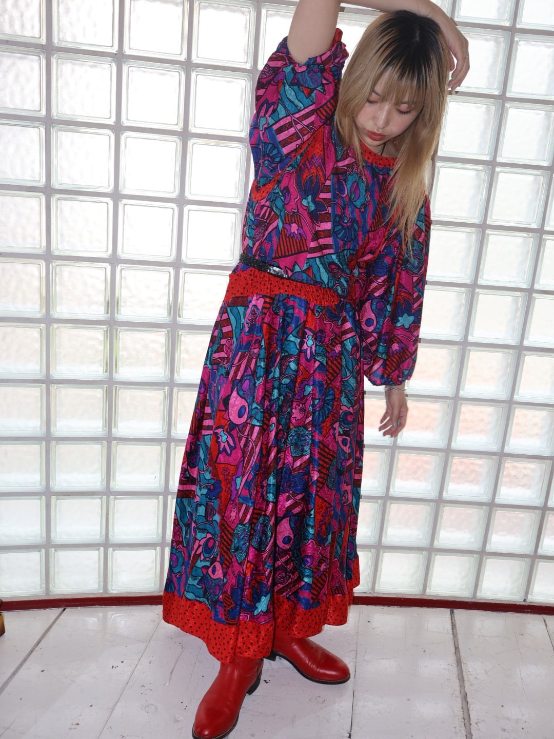Diane Freis(ダイアンフレイス)...1970年代後半にLA出身デザイナー”Diane Freis"が香港にて立ち上げたブランド。独創的な色使いと、柄合わせが特徴のワンピースが有名で、80年代のファッションシーンで人気を集めた。同じテキスタイルは殆ど無いとされ、現在も世界中にファンの多いコレクタブルなアイテム。