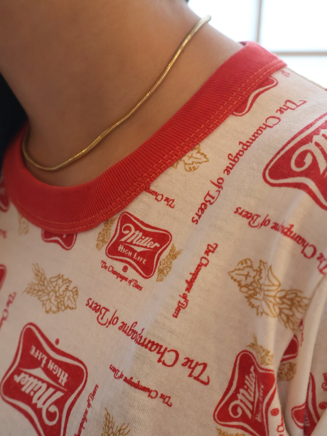 1970年代 ミラー 総柄 リンガー Tシャツ