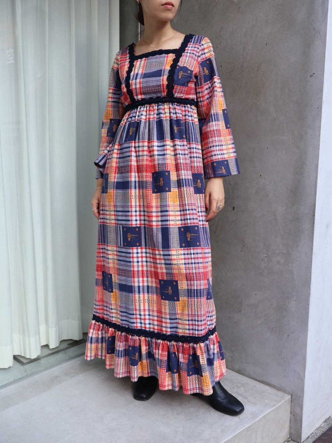 落ち着いたトーンのマドラスチェックで大人な女性へオススメなドレス。胸元の切り返しがスタイルアップ効果を。