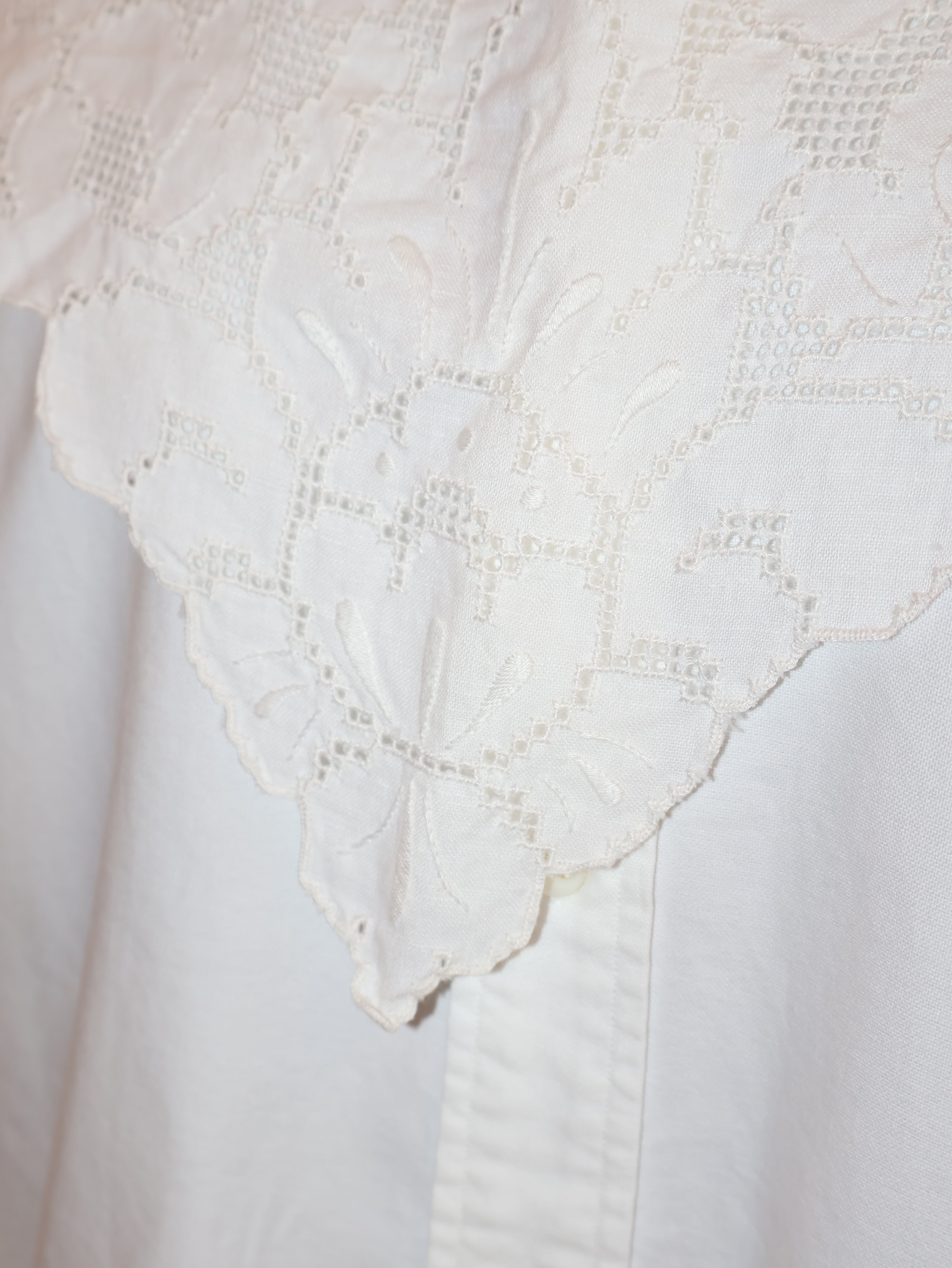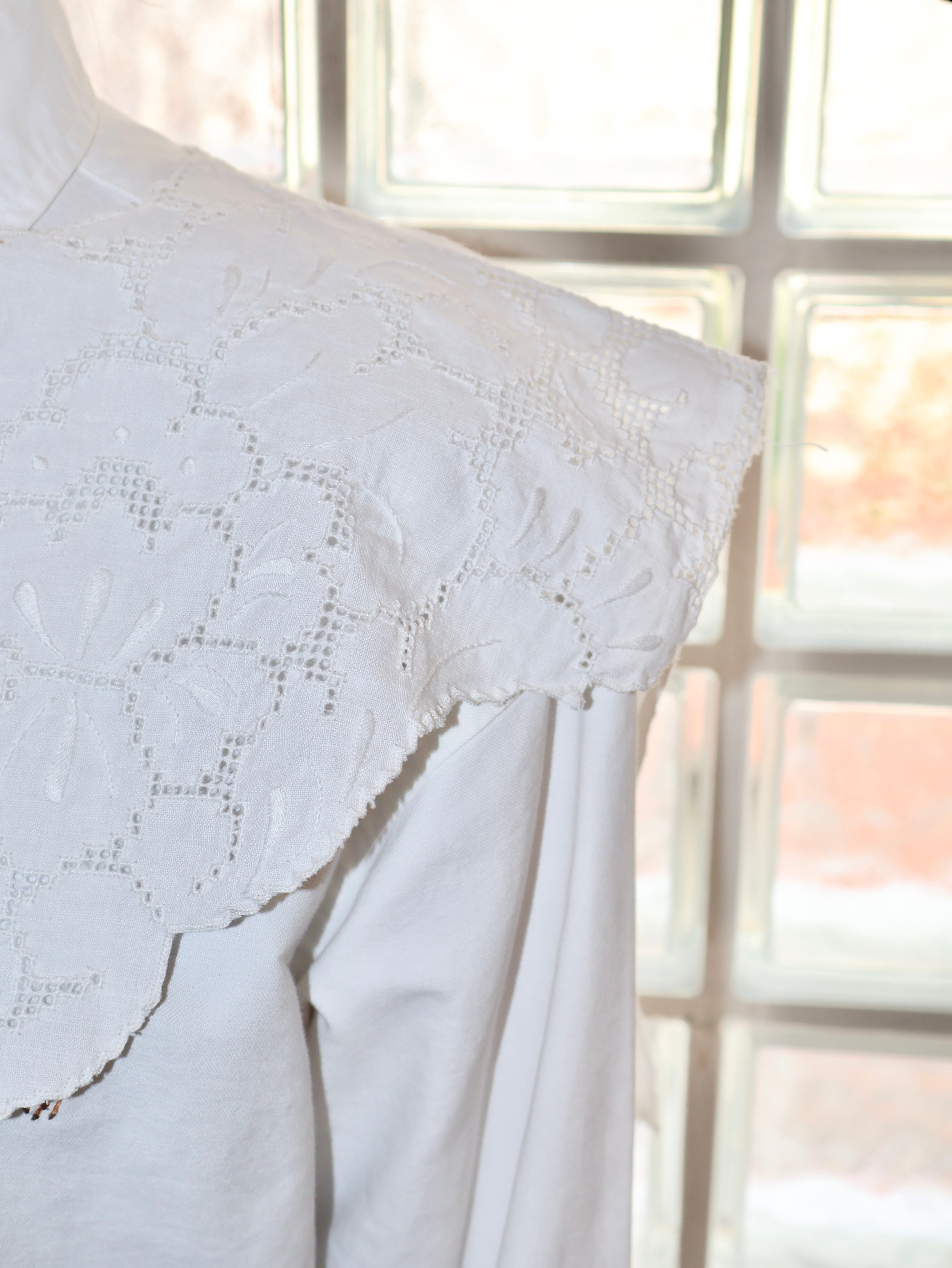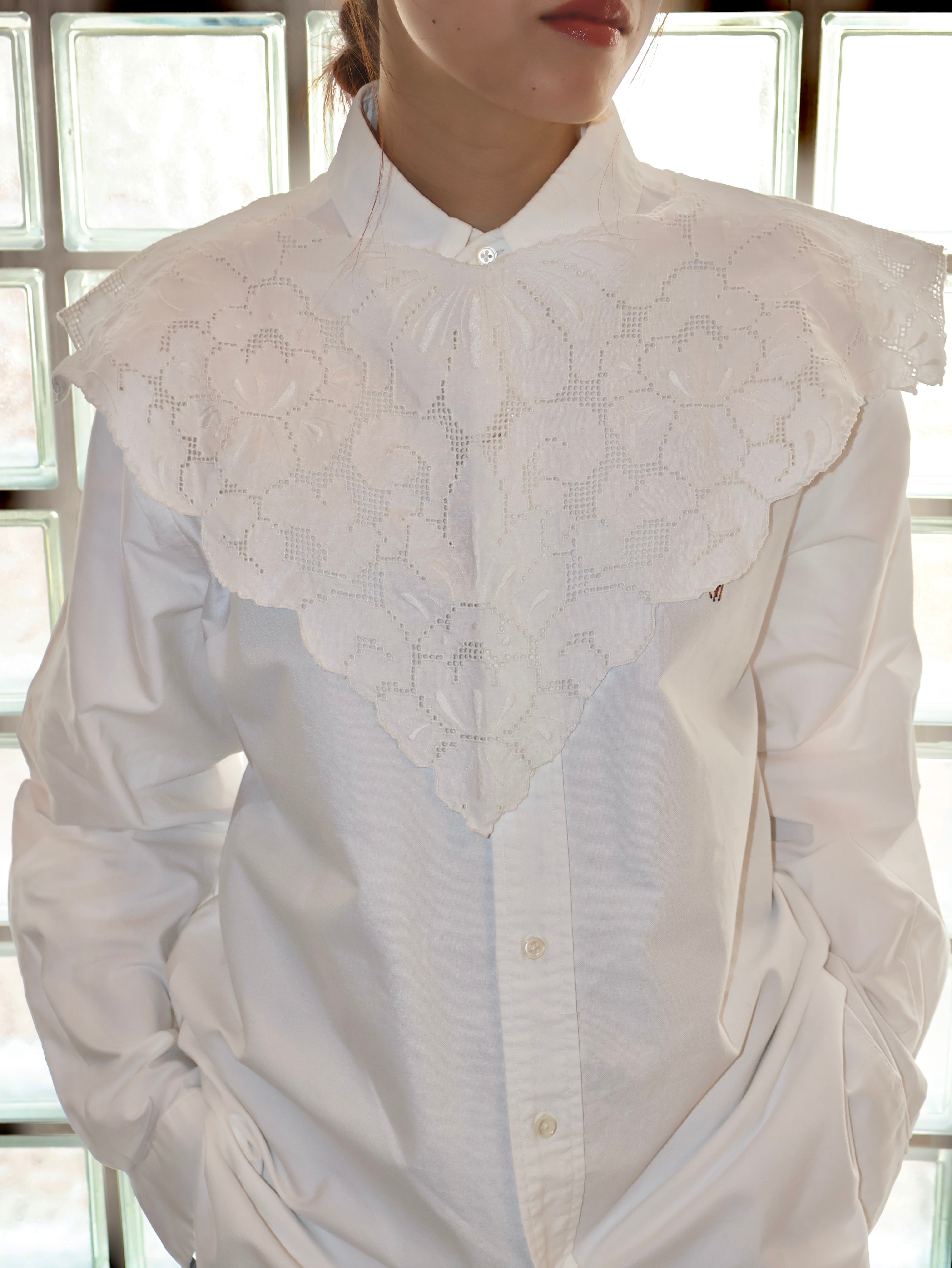リネン素材で涼しげな着心地の付け襟。大きな襟が存在感を出しつつも、割と馴染みやすいアイテム。