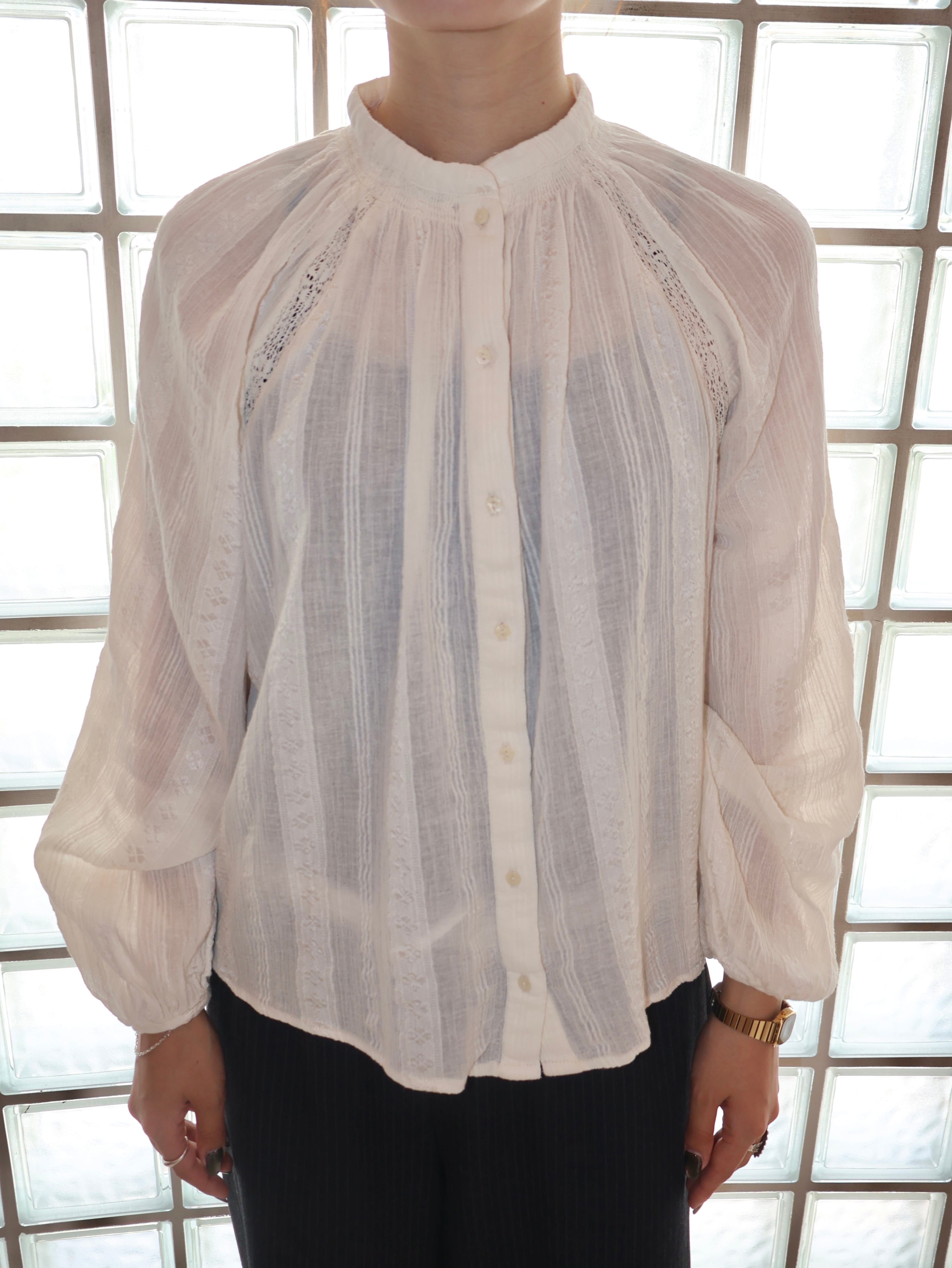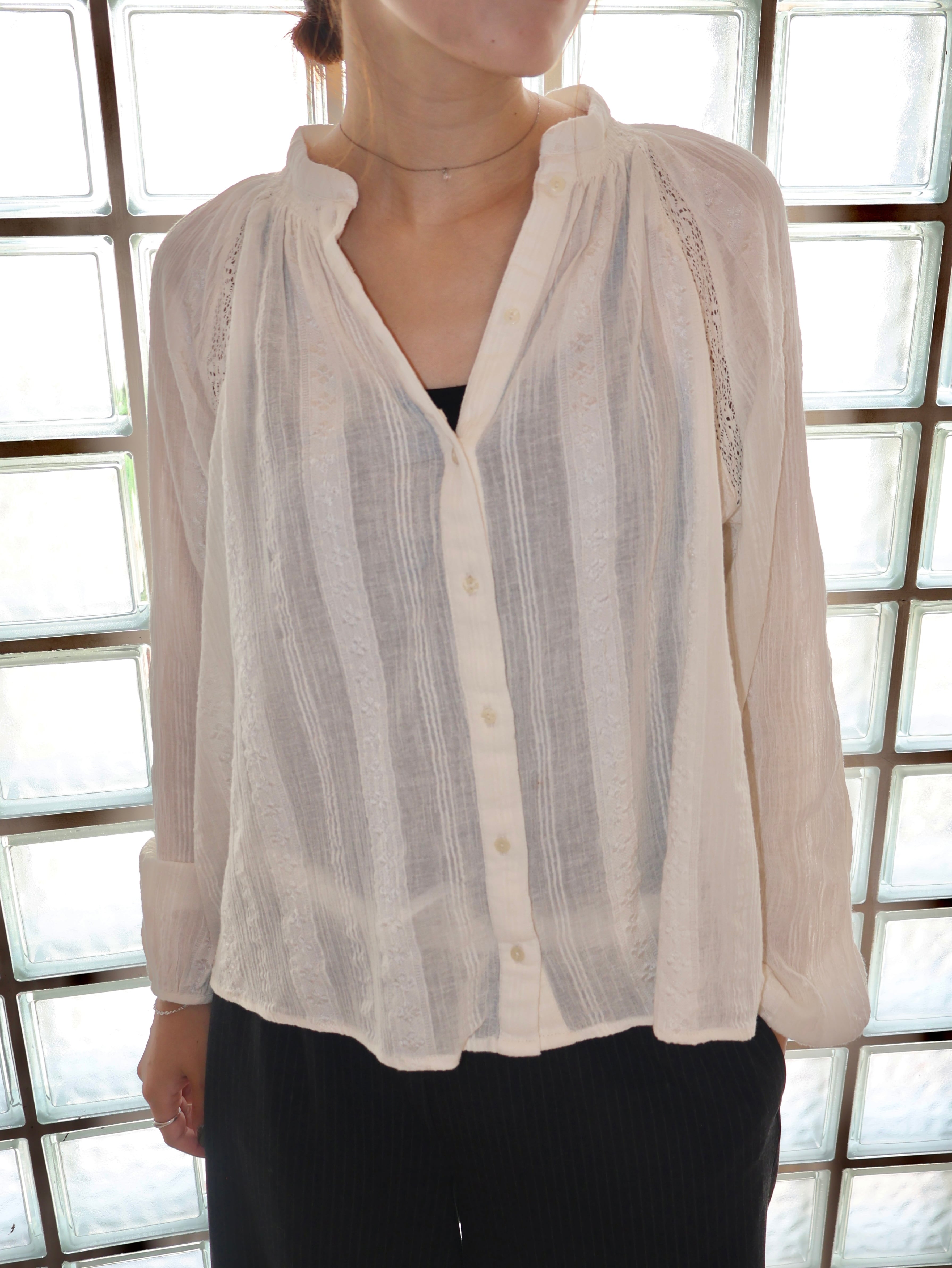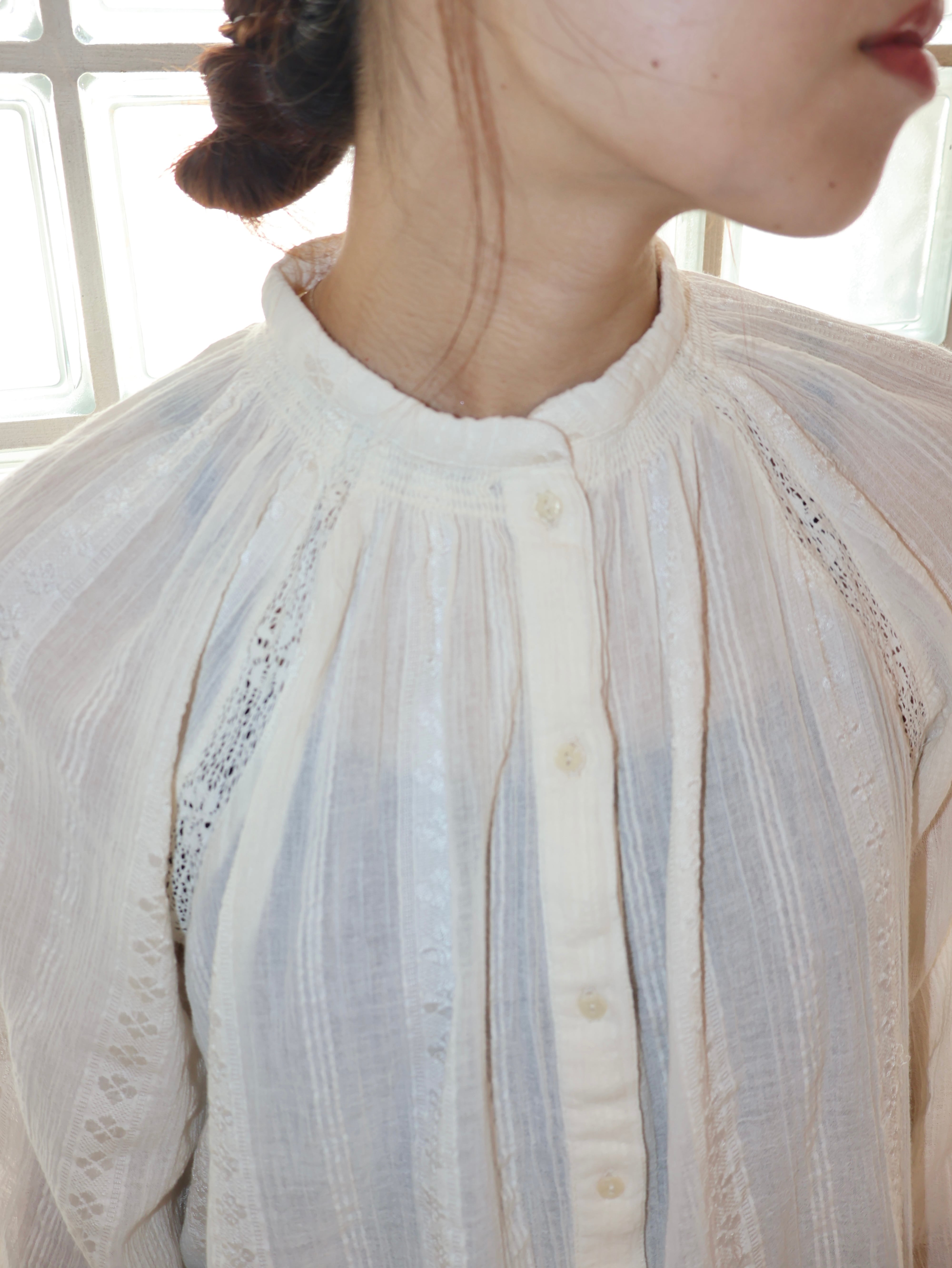 ストライプ状に柄が入っているインド綿の生地が可愛いブラウス。