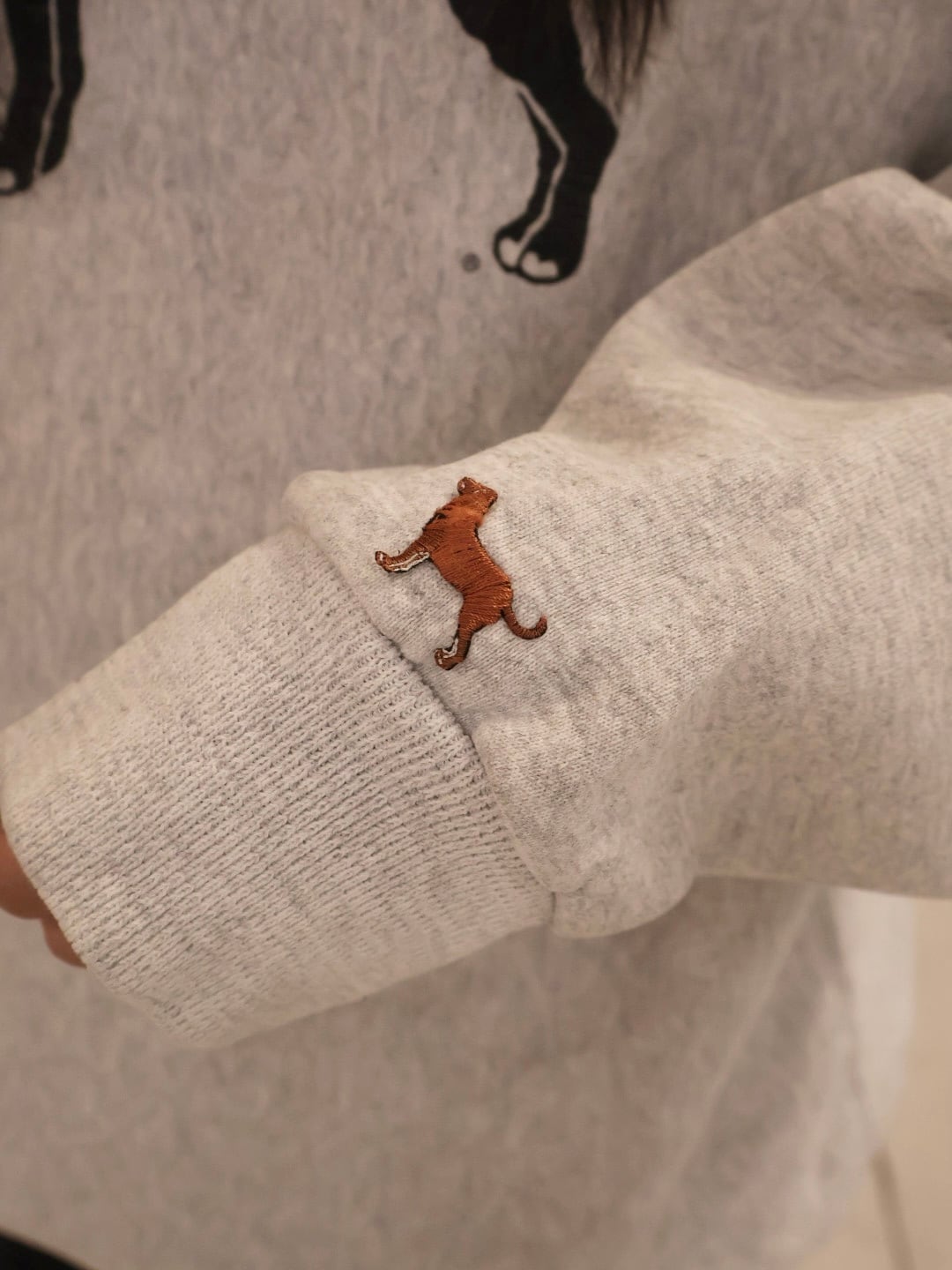 袖にある刺繍ワッペンもポイント。ゆったりしているので、ロングワンピースの上から着たり、レディな合わせでもオススメしたいアイテム。是非◎