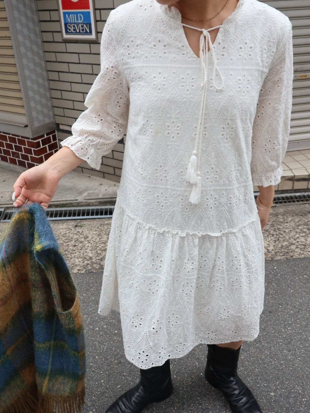 カットワーク ミドル ワンピース