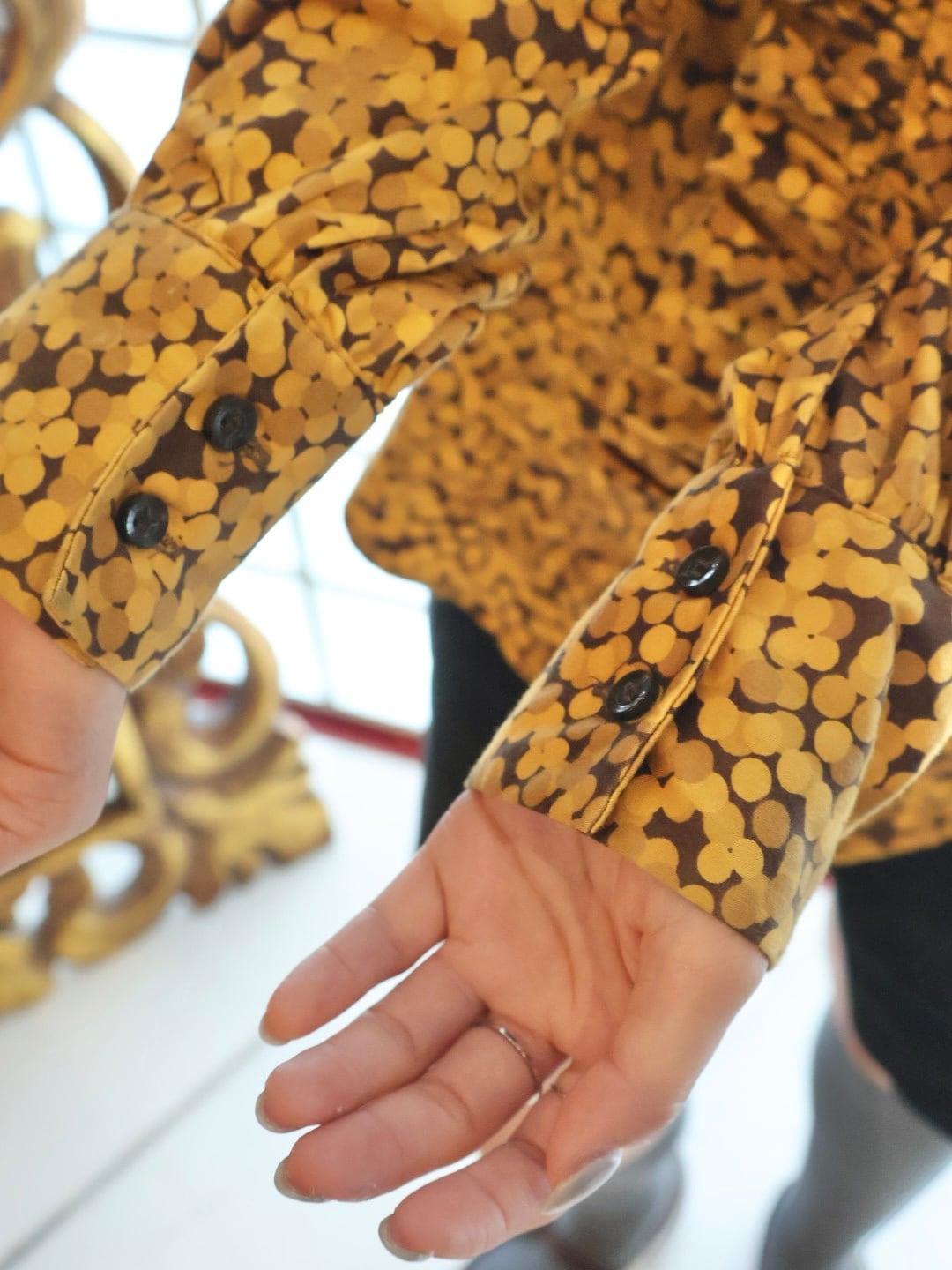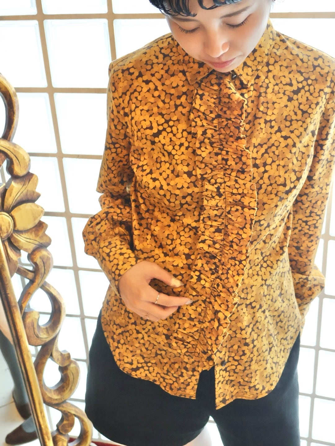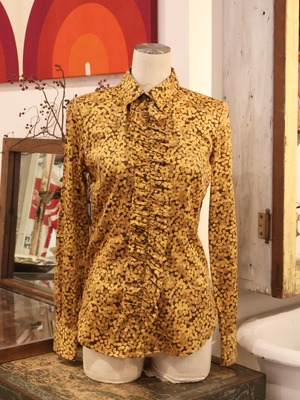 総柄 フリル デザイン ブラウス