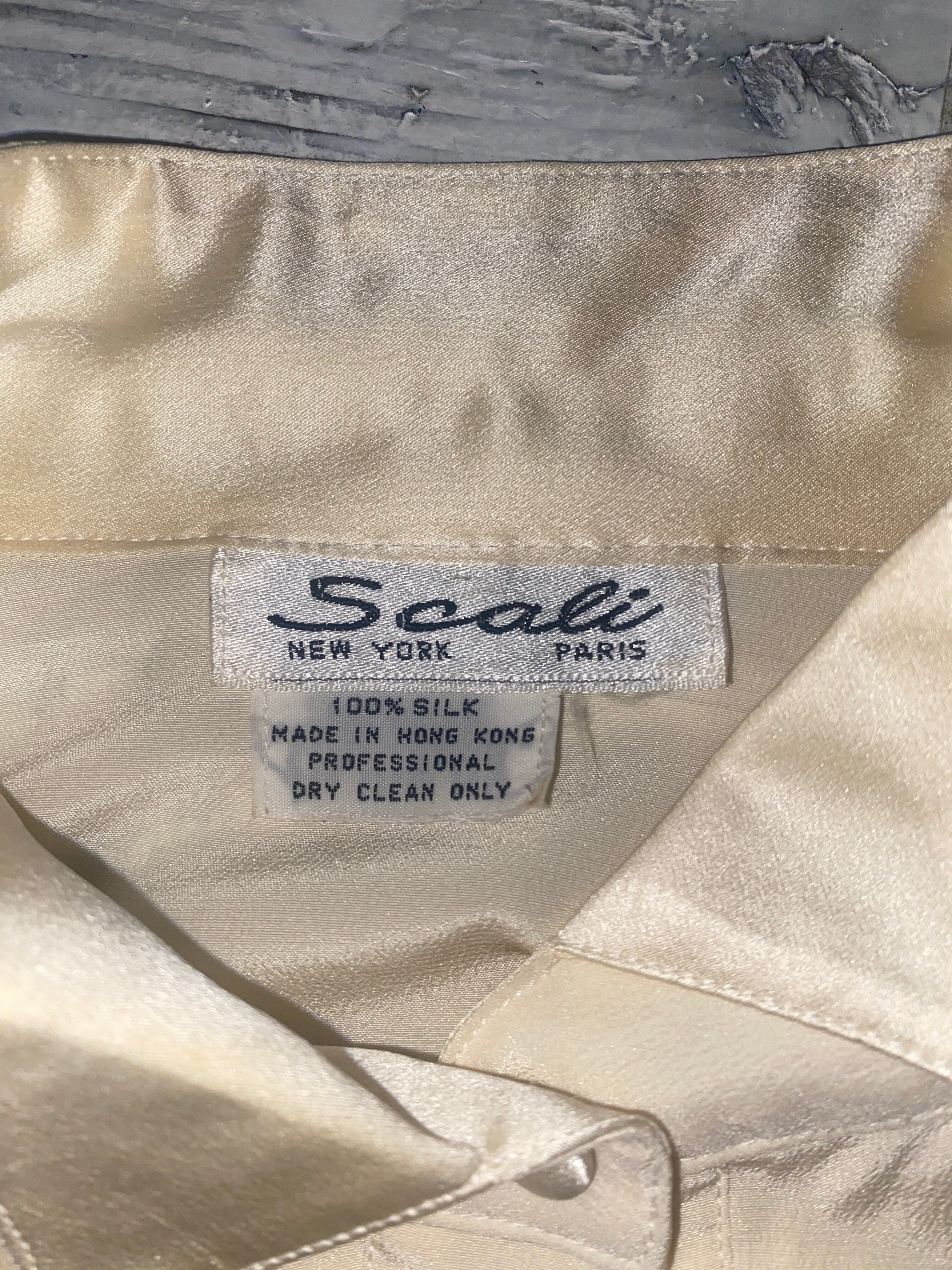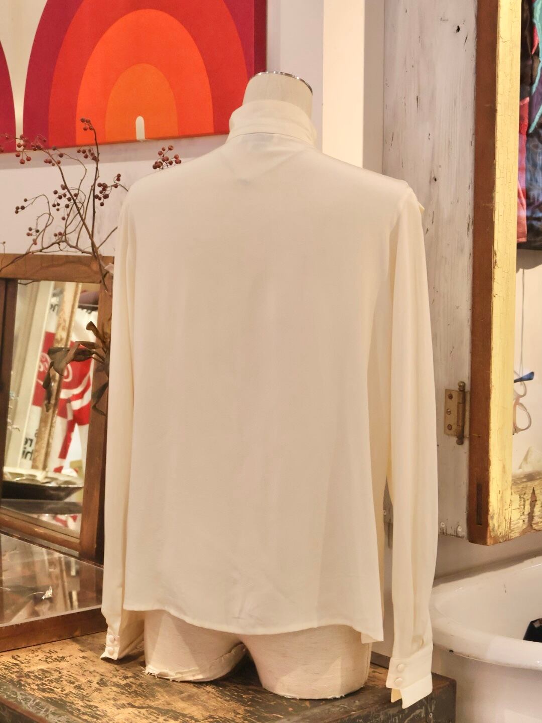 シルクの光沢感とスタンドカラーが何とも上品な一着。