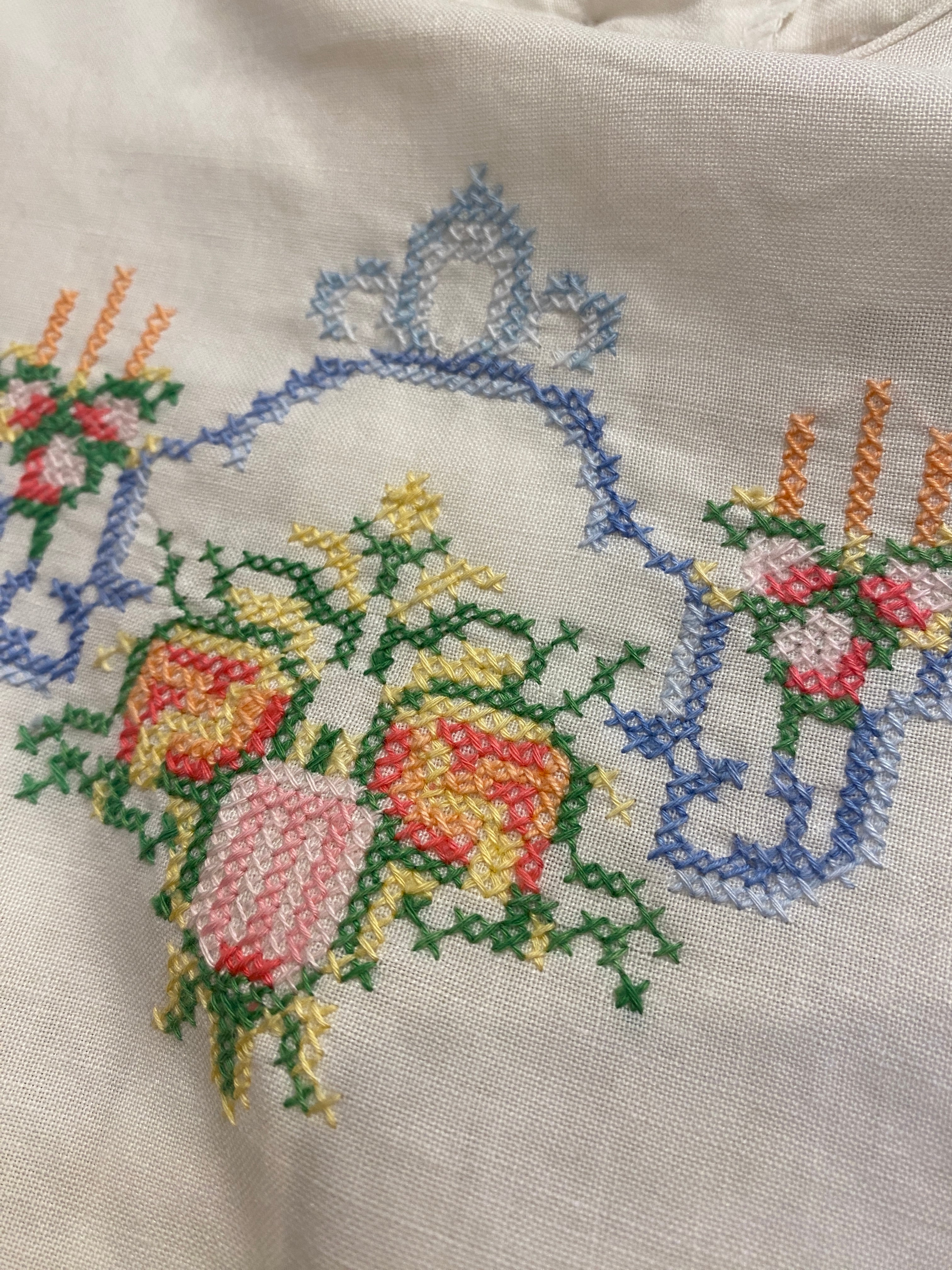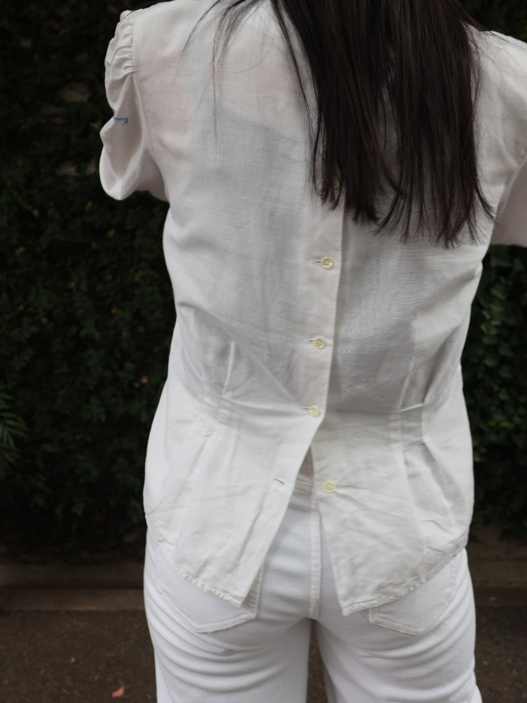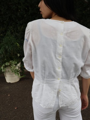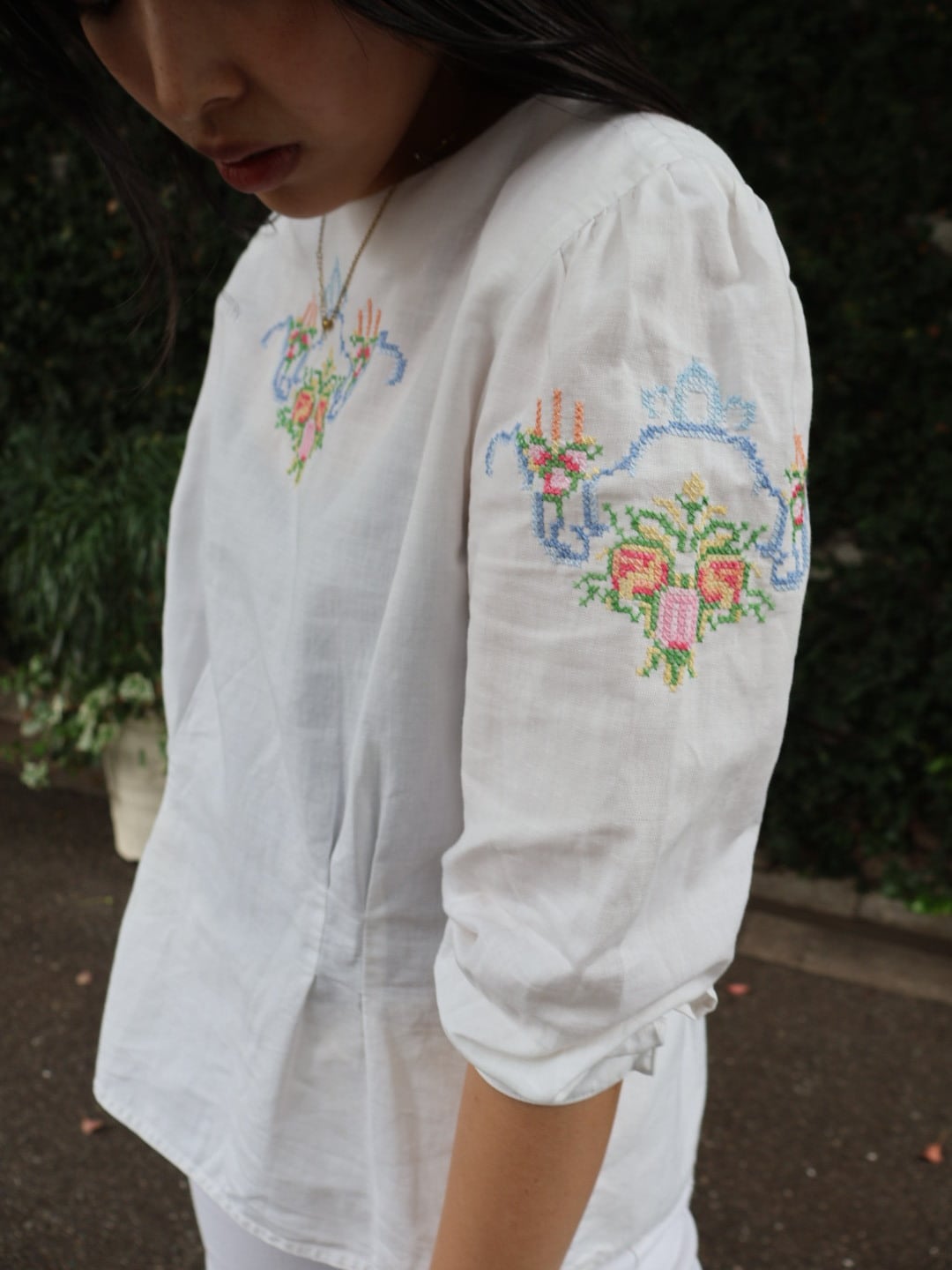 白に淡いカラーの刺繍が可愛らしいブラウス。
