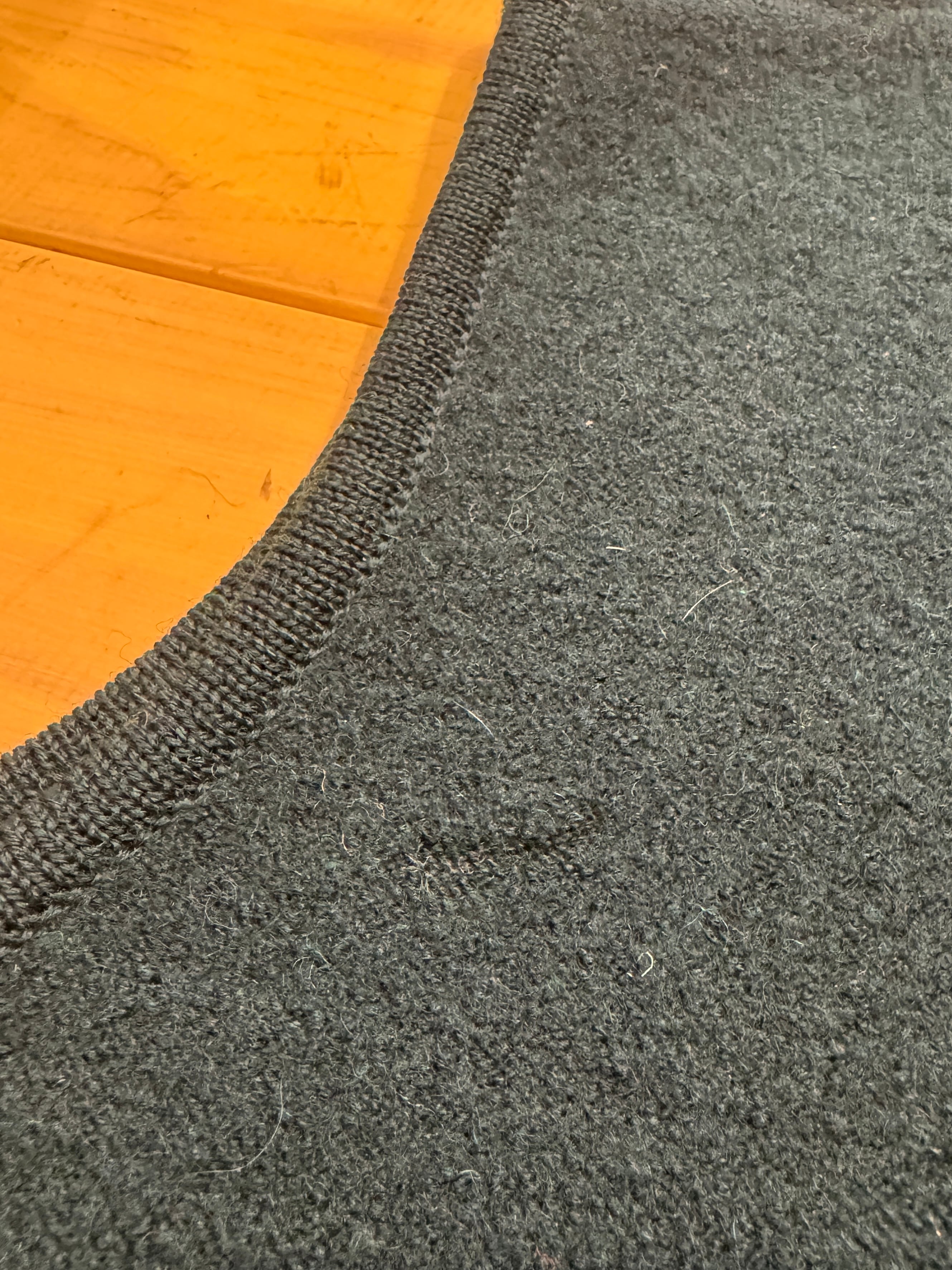 右胸あたり、左ポケット横にウールの脱毛あり。