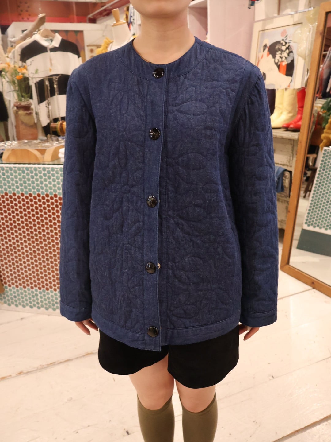 ノーカラーですっきりとした印象で着られ、どんなスタイルにも。