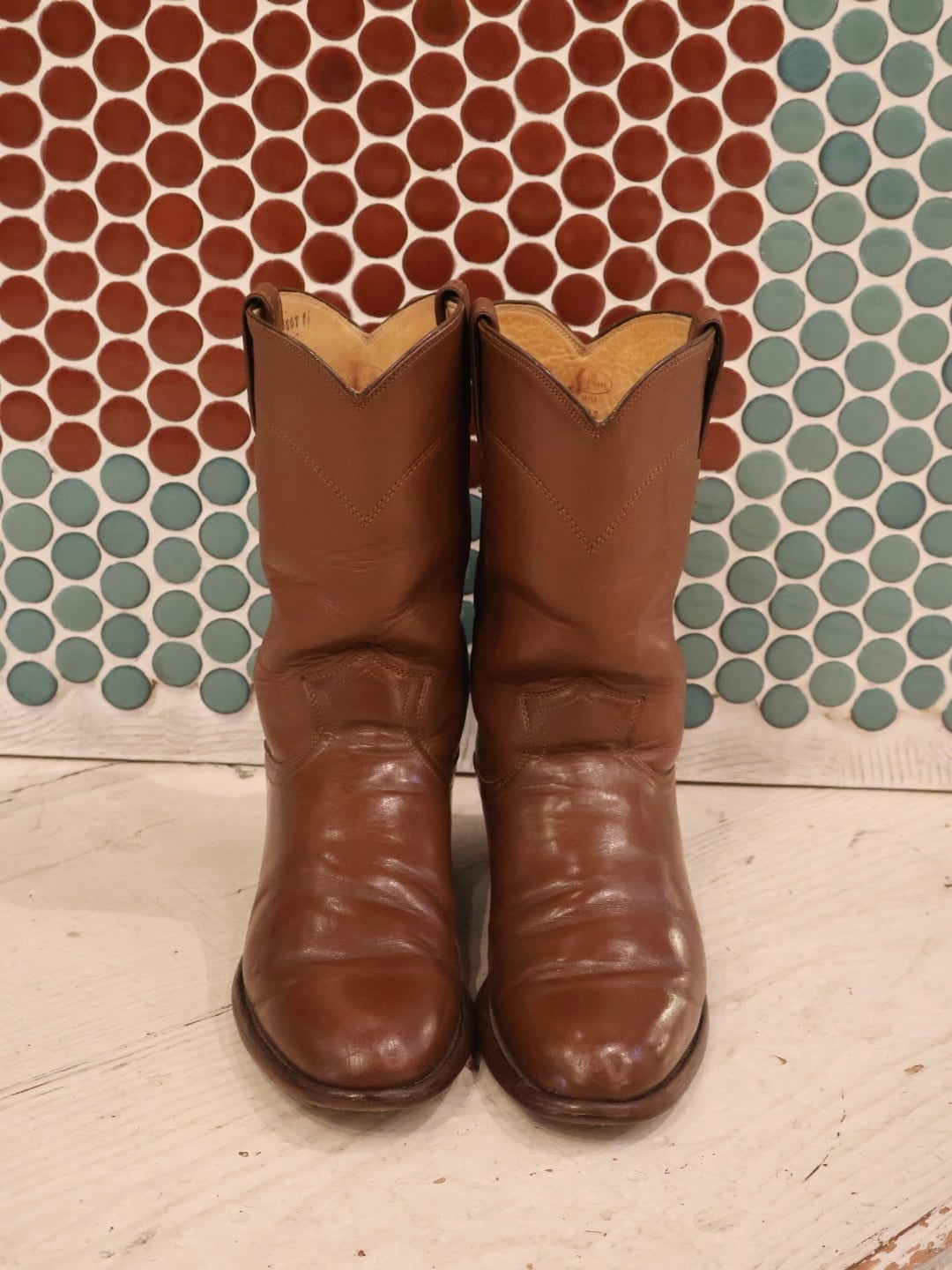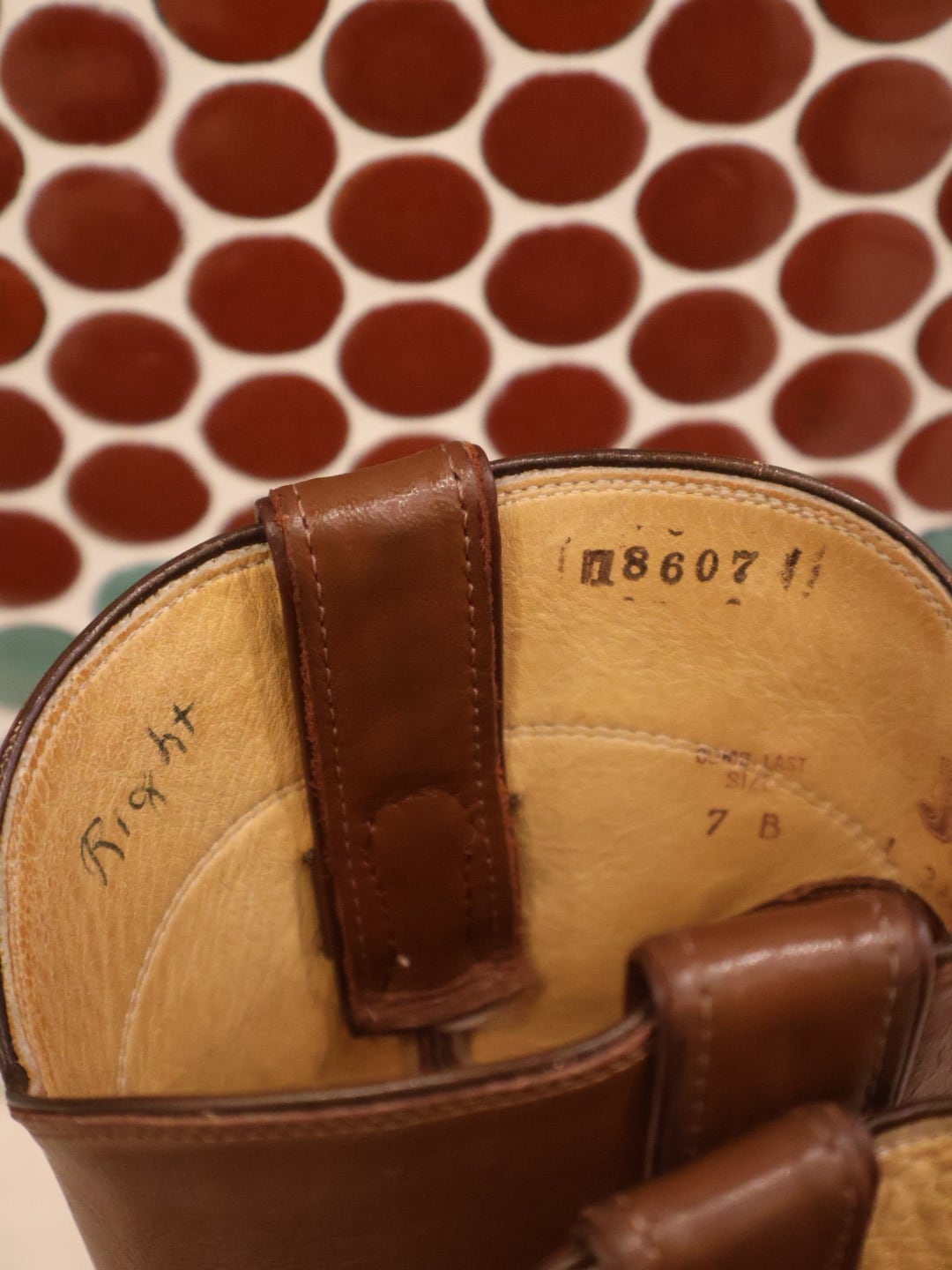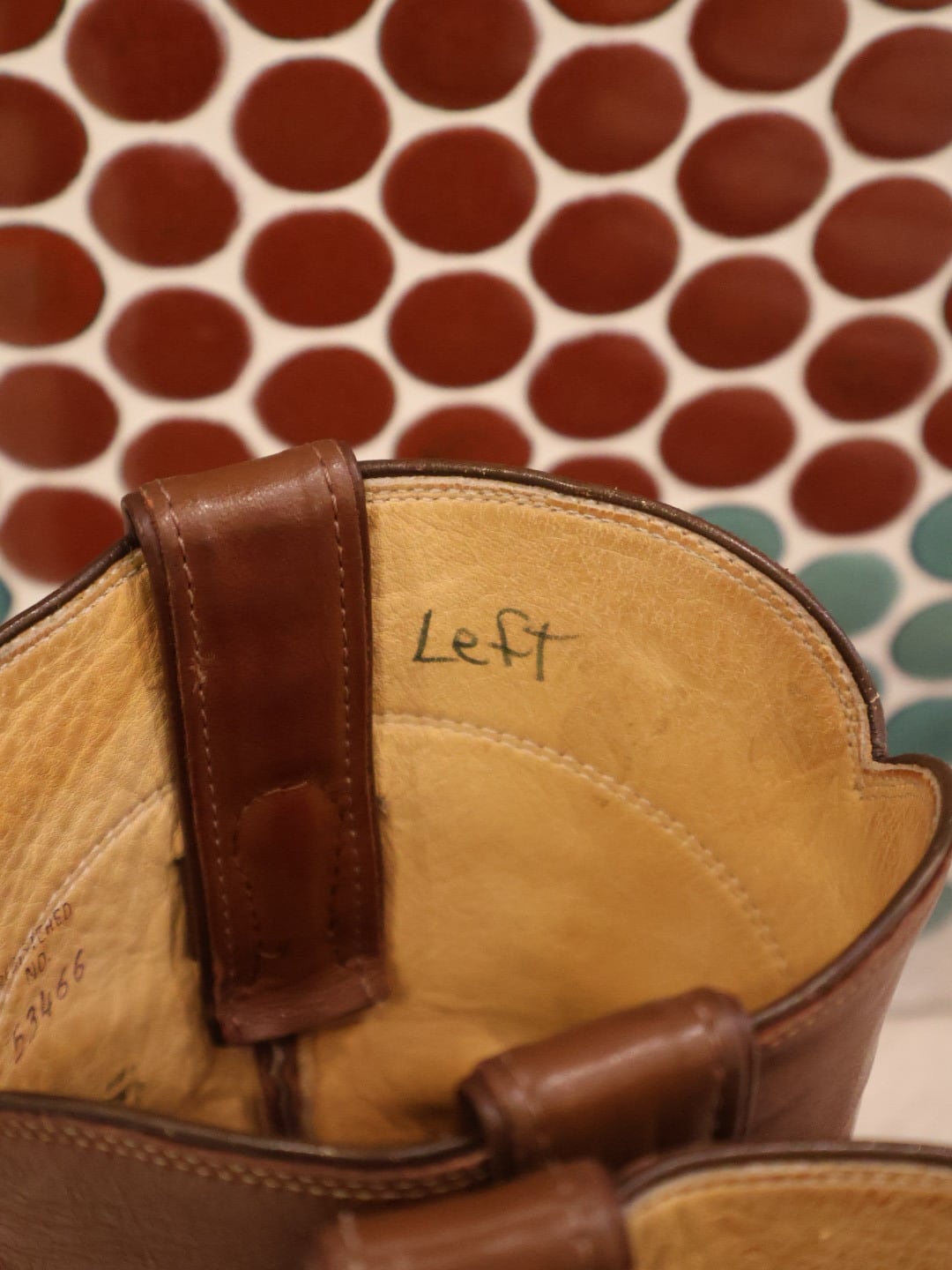 つま先部分に傷やこすれの跡があり、全体的に使用感あり。
