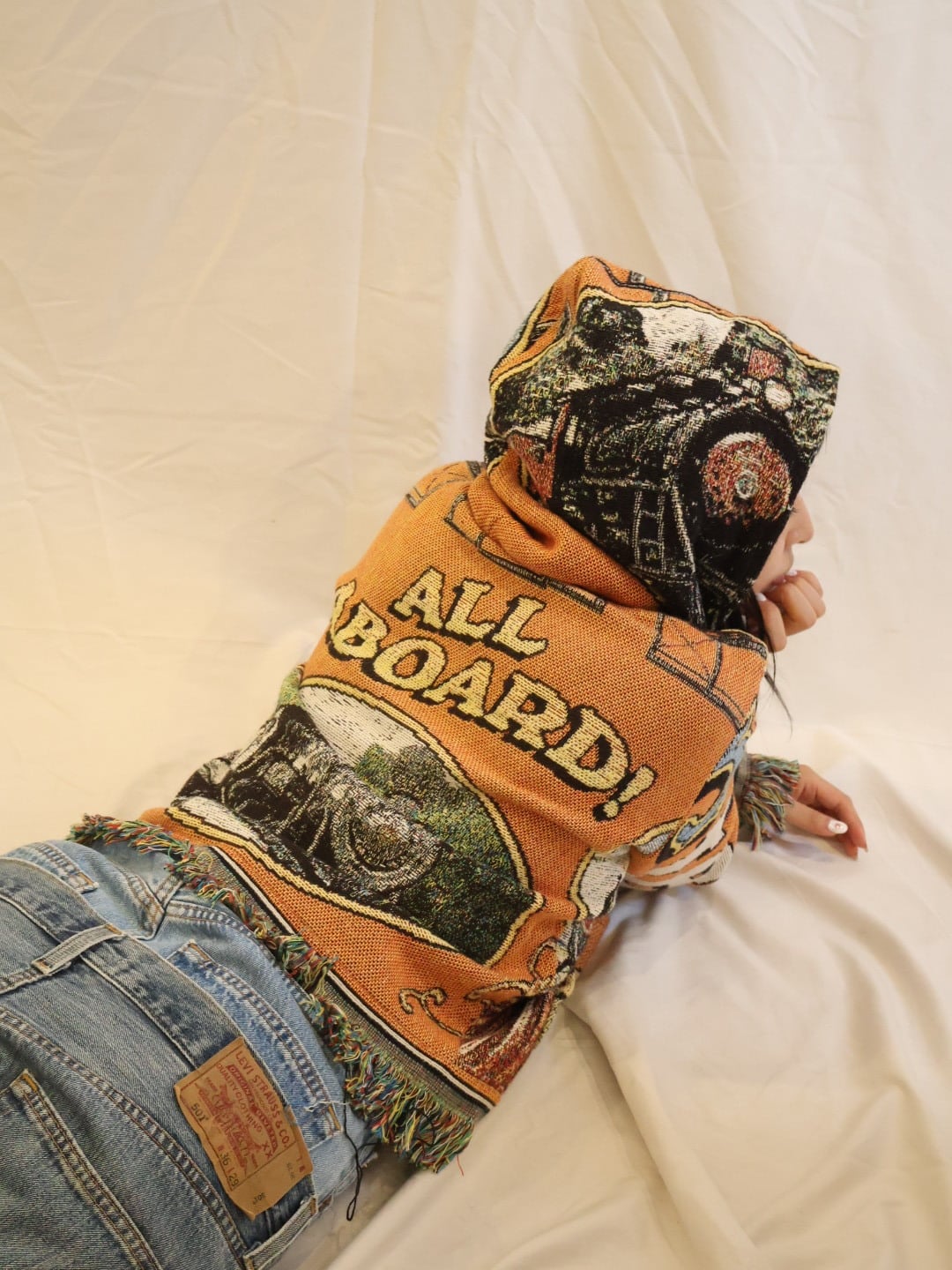 ラグをスウェットにしたようなデザインがユニークなフーディー。360度どこから見ても存在感のある一枚は、シンプルな合わせでも様になります。