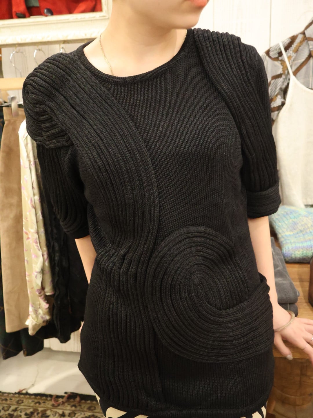 立体的なロープ編みのような、個性の光るデザインが魅力の半袖ニット。