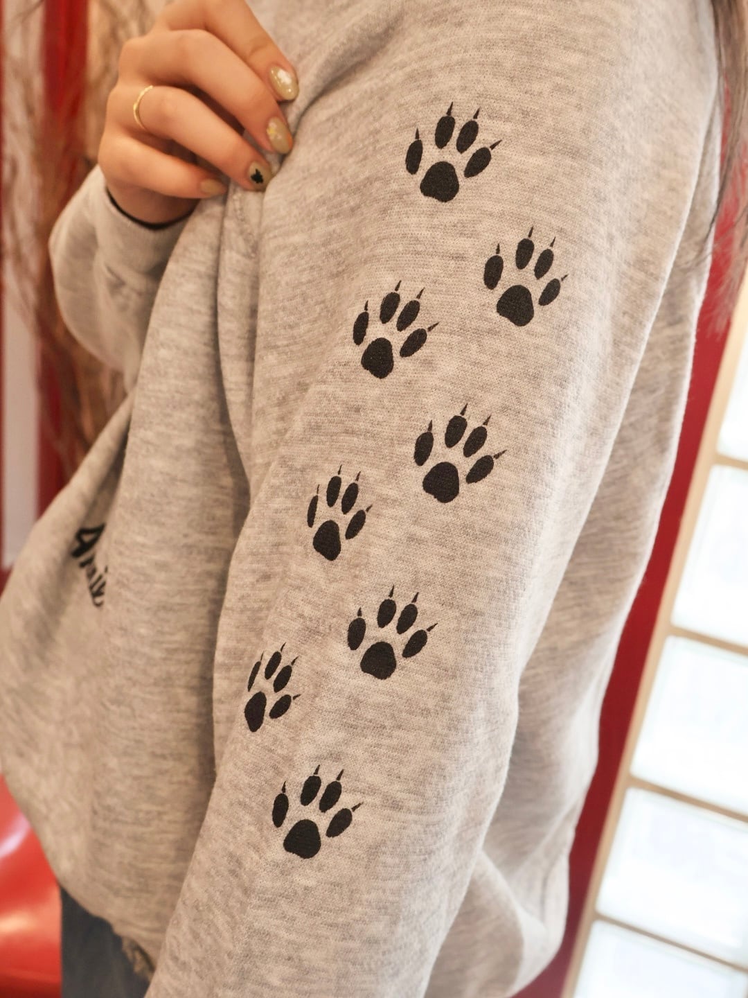"Paws and Claws" という、動物保護活動を行うチャリティーショップを運営し、寄付を募っている団体のプリント。
