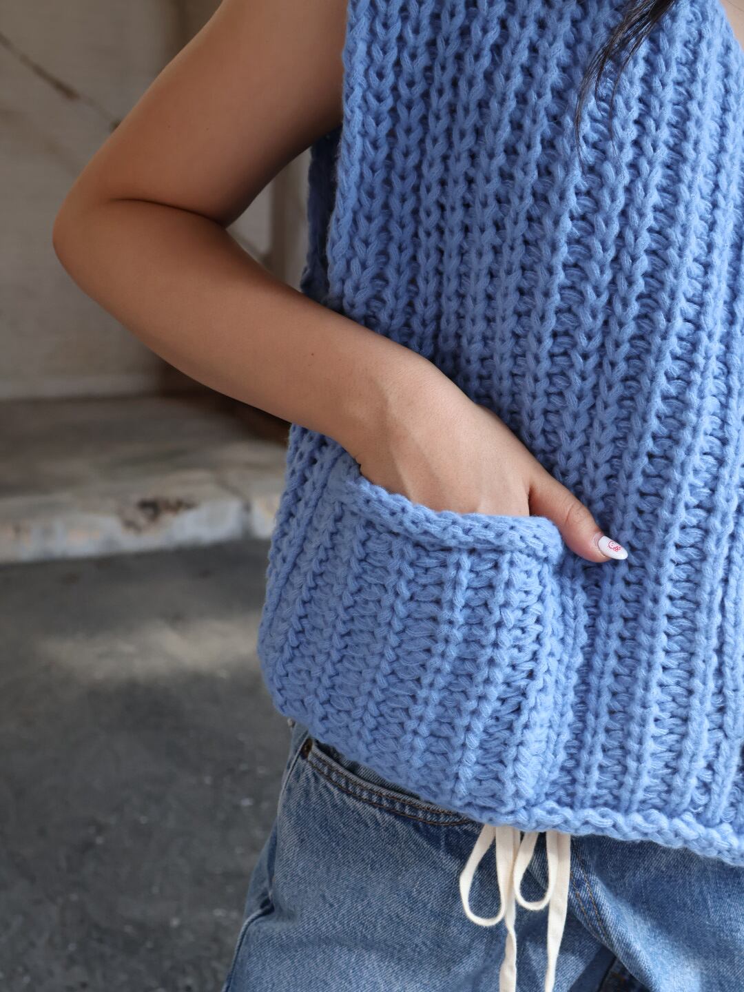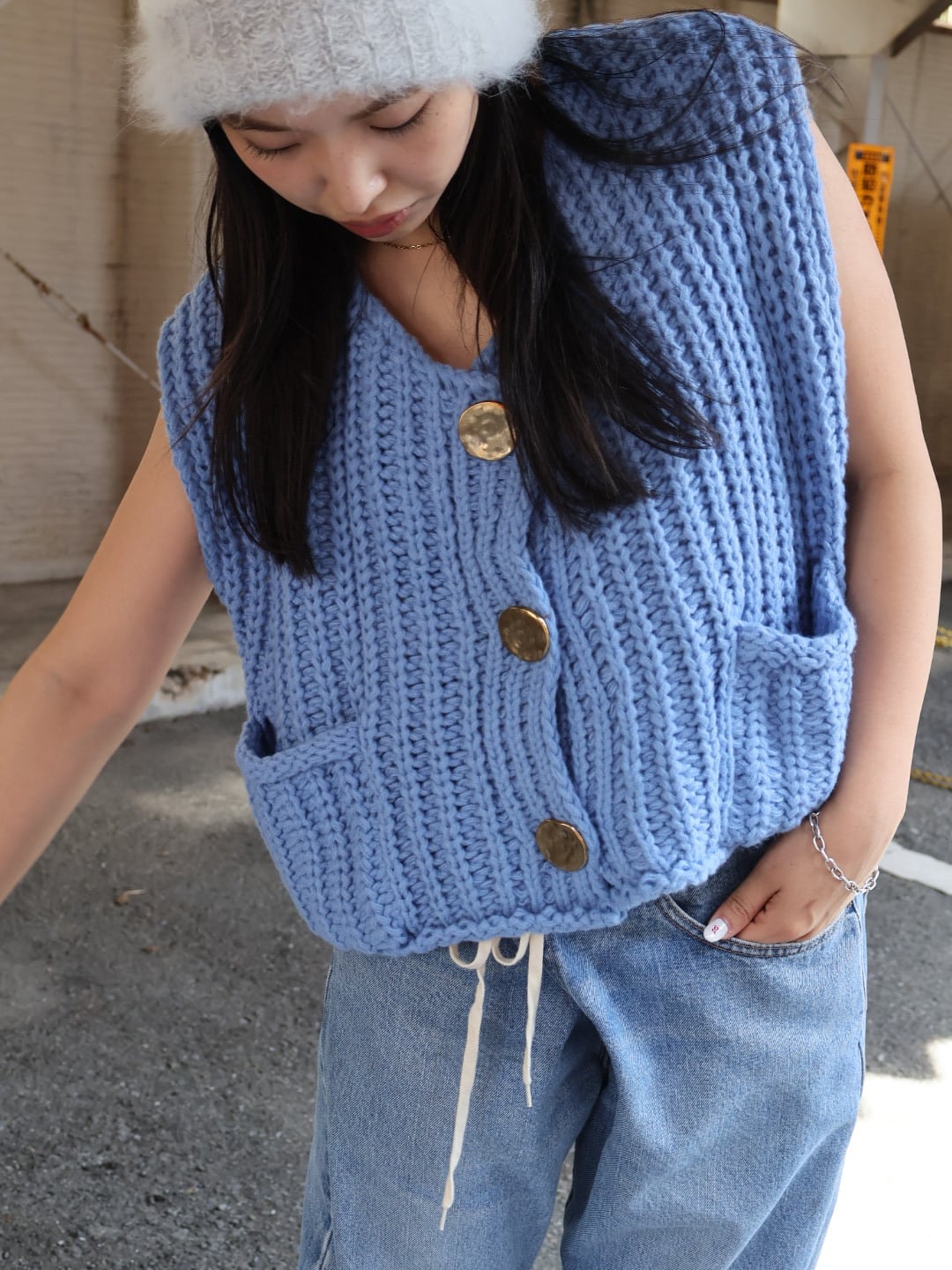 ざっくりと編まれたローゲージのニットベスト。
