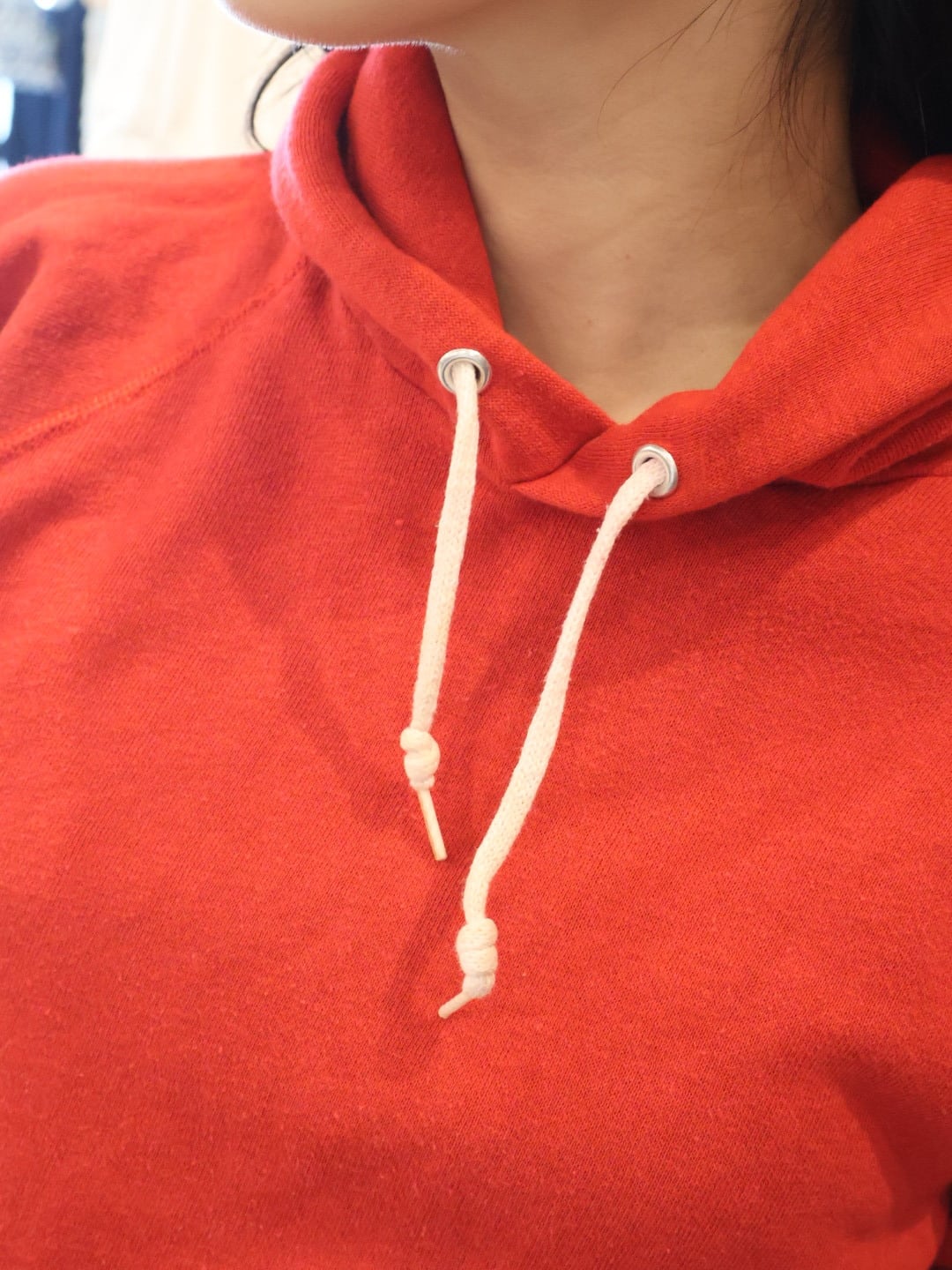 パキッと映える赤と、コンパクトなサイズ感がキュート。デニムなどとカジュアルに合わせても、どこか女性らしく決まる良いサイズ。コートやジャケットの中に入れて、フードだけ見せても◎