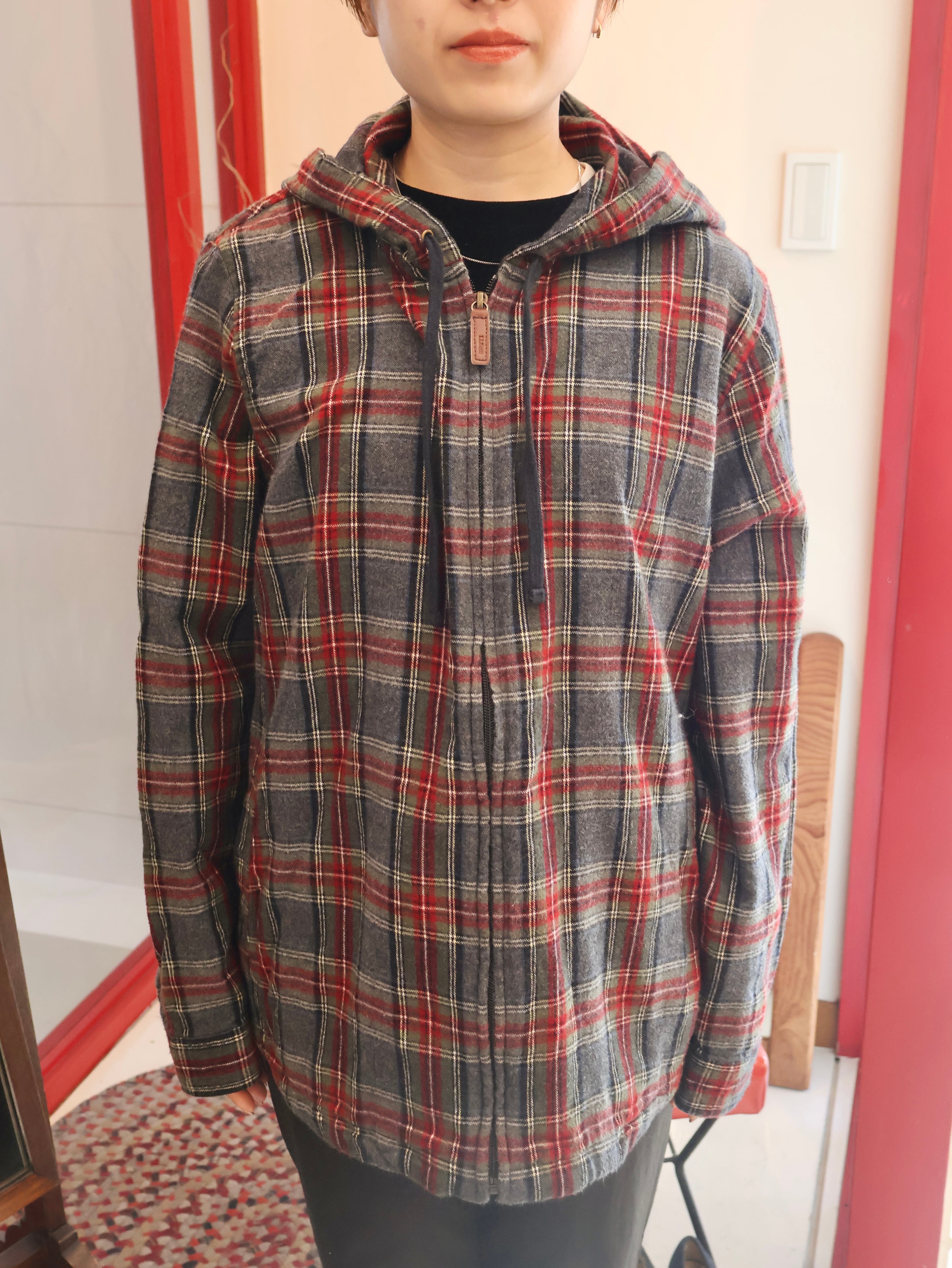 L.L.Bean plaid cotton zip-up hoodie【1701】