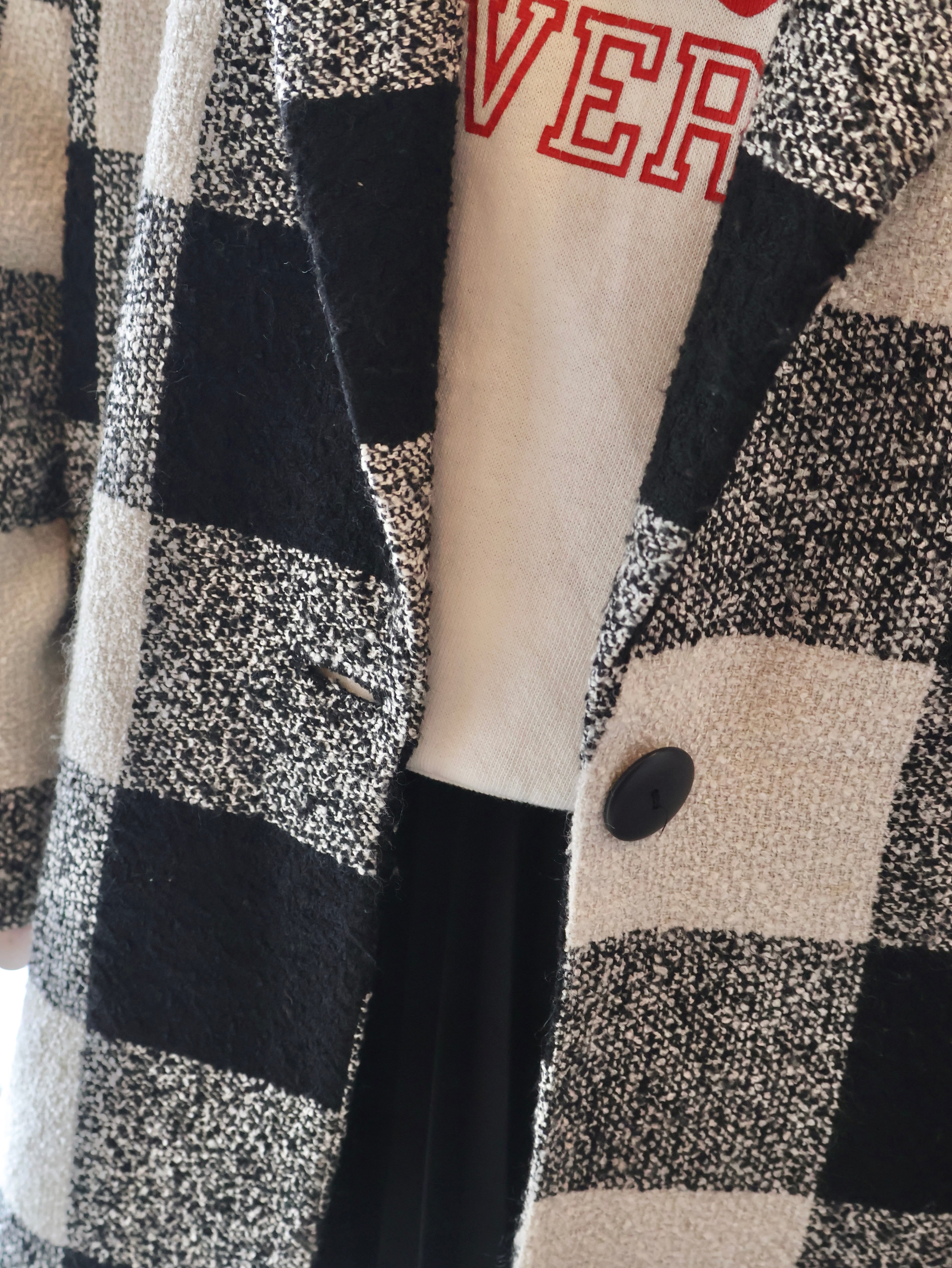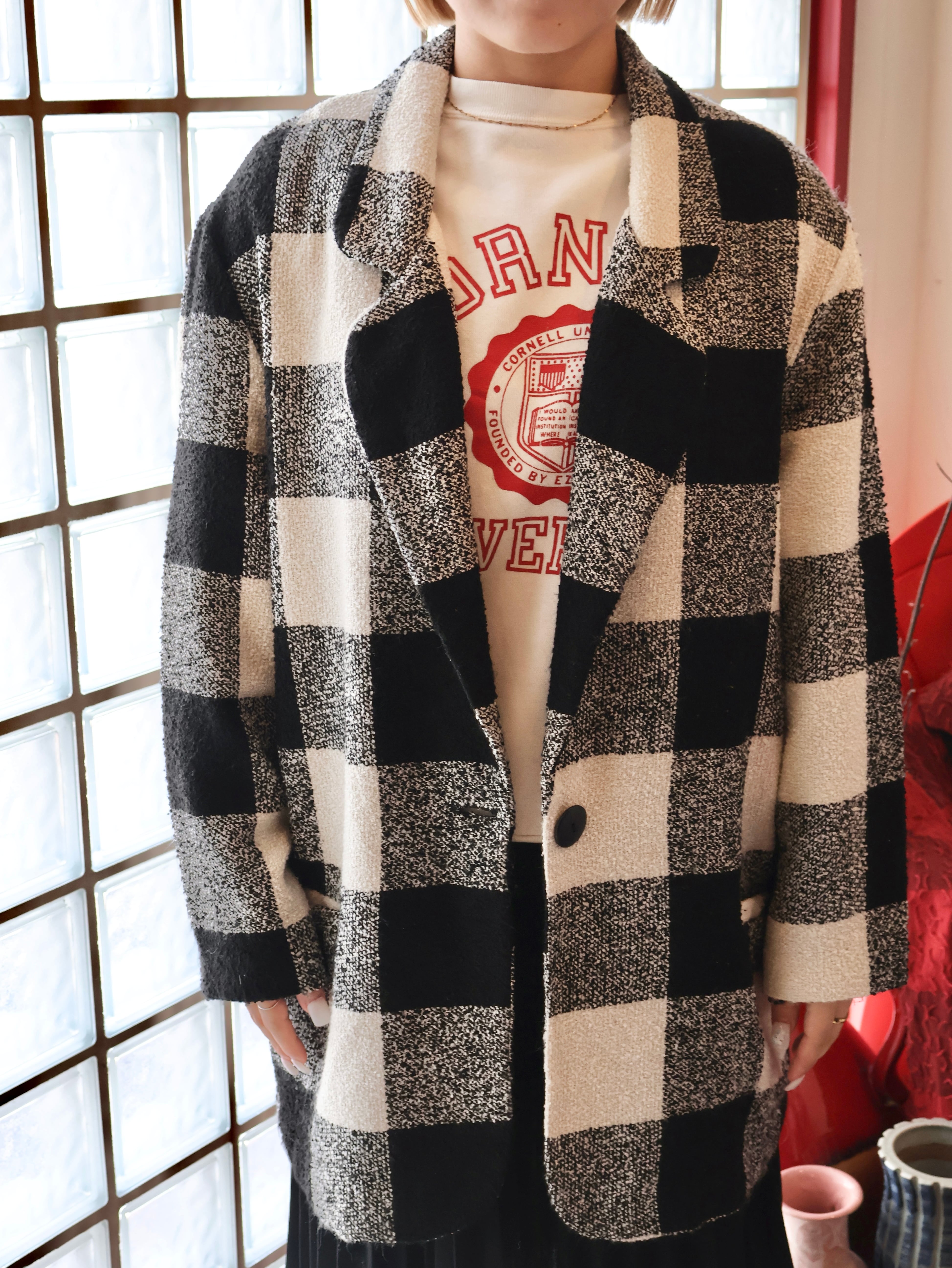 モノトーンのブロックチェックが目を惹くテーラードジャケット。
