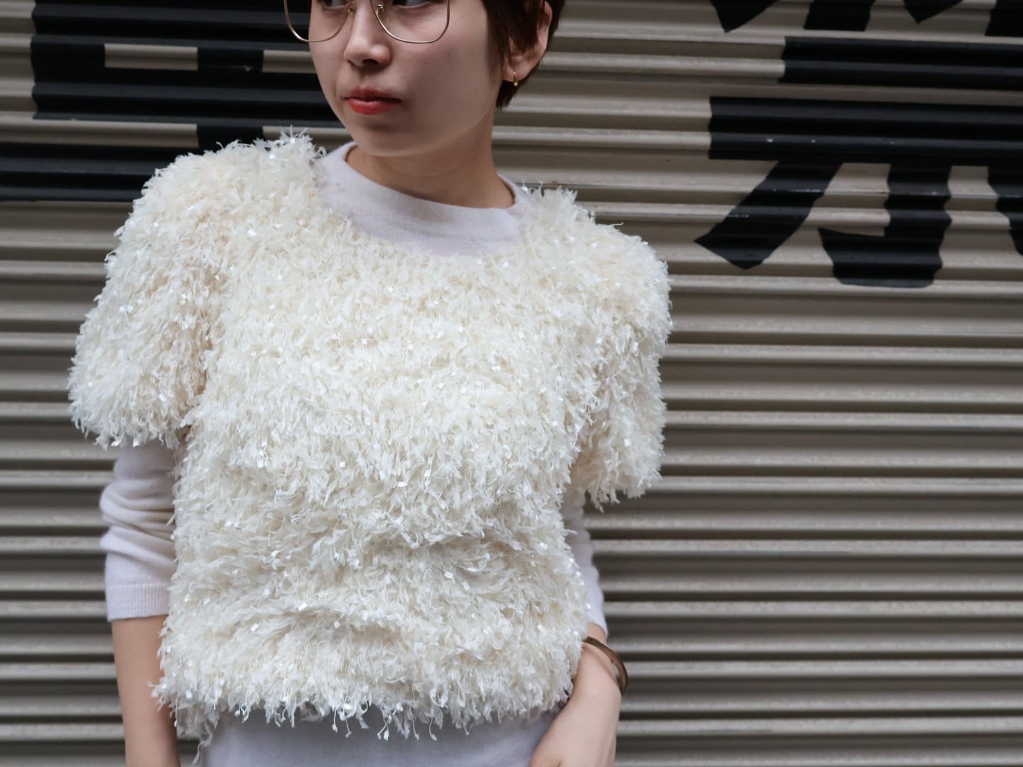 柔らかなシャギー素材を使用したボリューミーで目を引くショートスリーブトップス。