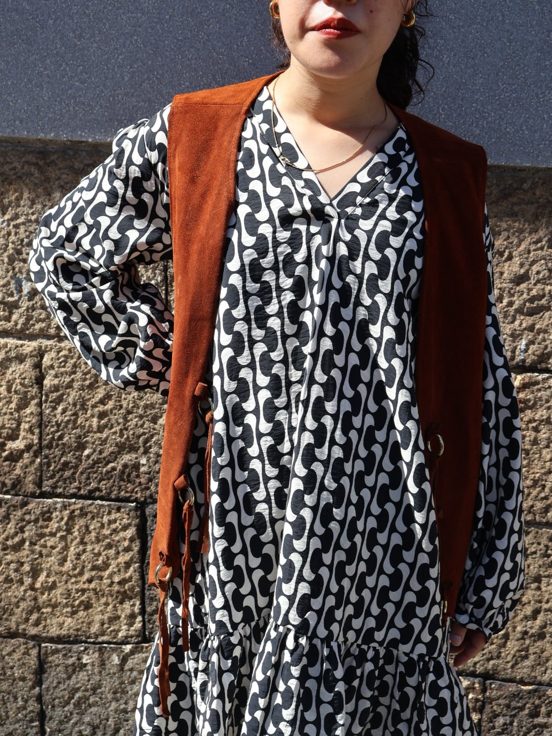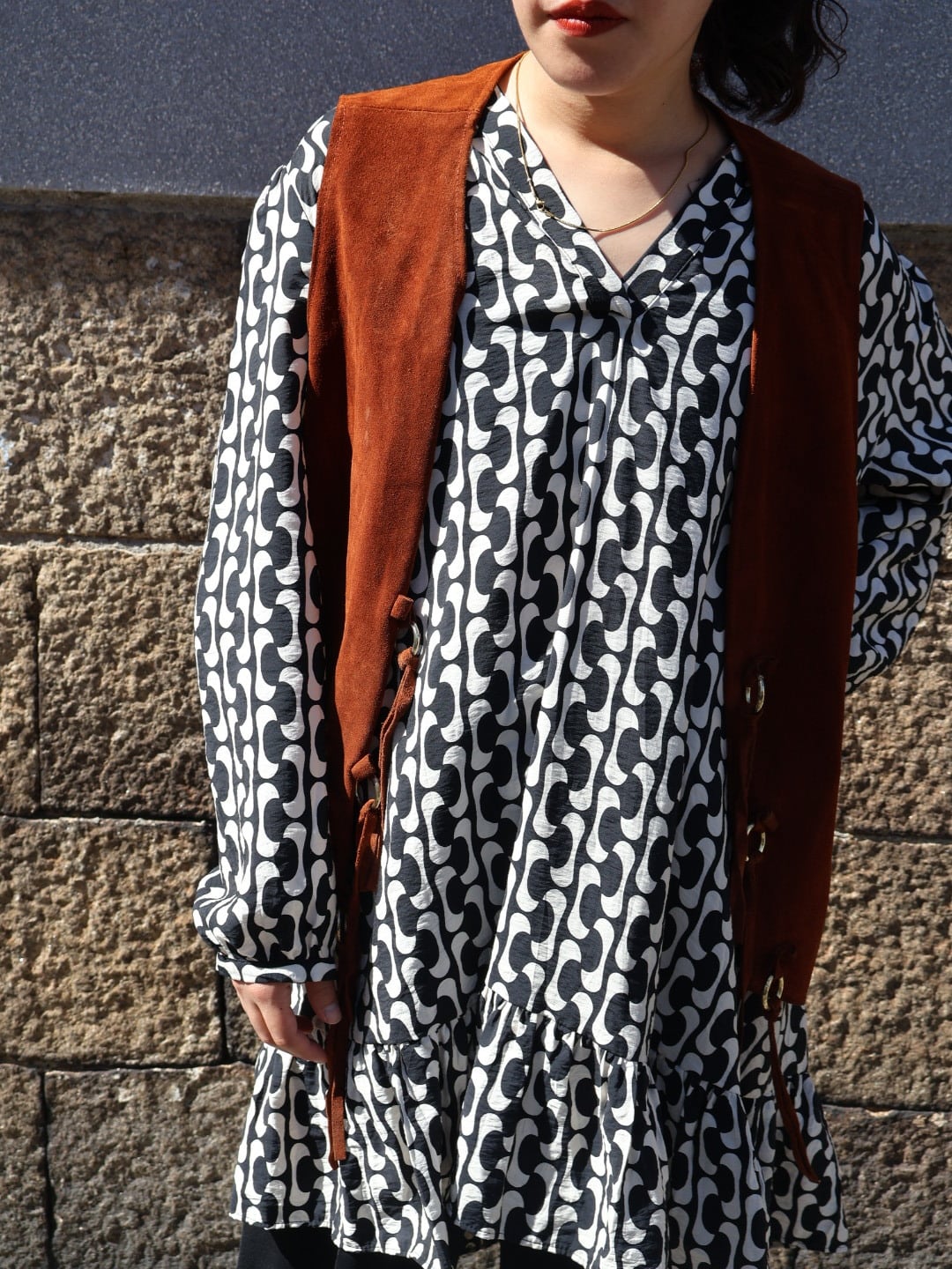 いつものワンピースなどにプラスするだけで一気に古着らしいコーディネートに。