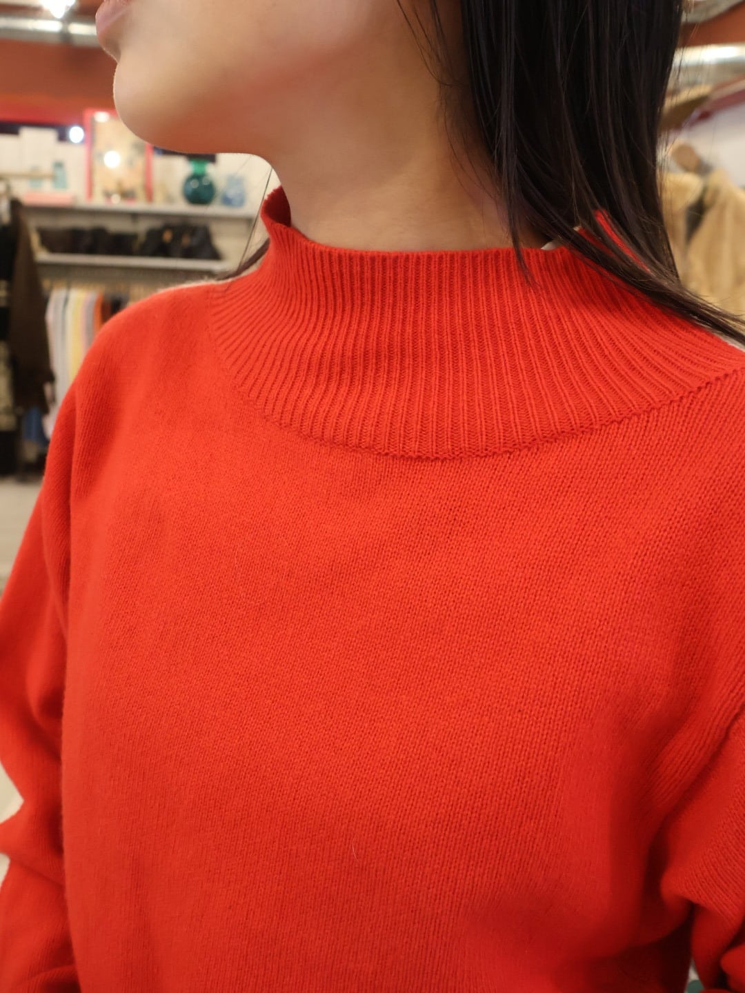 前後でカラーが違うユニークなデザインのハイネックセーター。