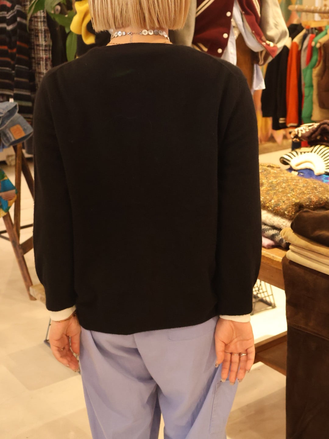 ベーシックで使いやすい黒のクルーネックカーディガンは一着は持っておきたい万能アイテム◎