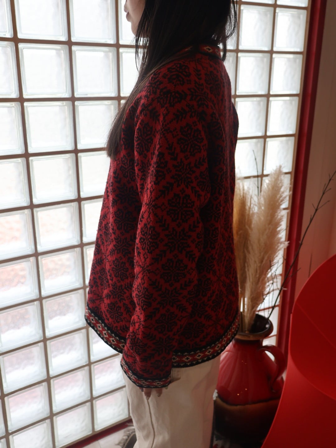 L.L.Beanから季節感あるノルディックニットが入荷。スタイリングのアクセントにもなるコンチョボタンや、赤×黒のパキッとしたカラーリングは、子供っぽくなりすぎず決まる一枚。