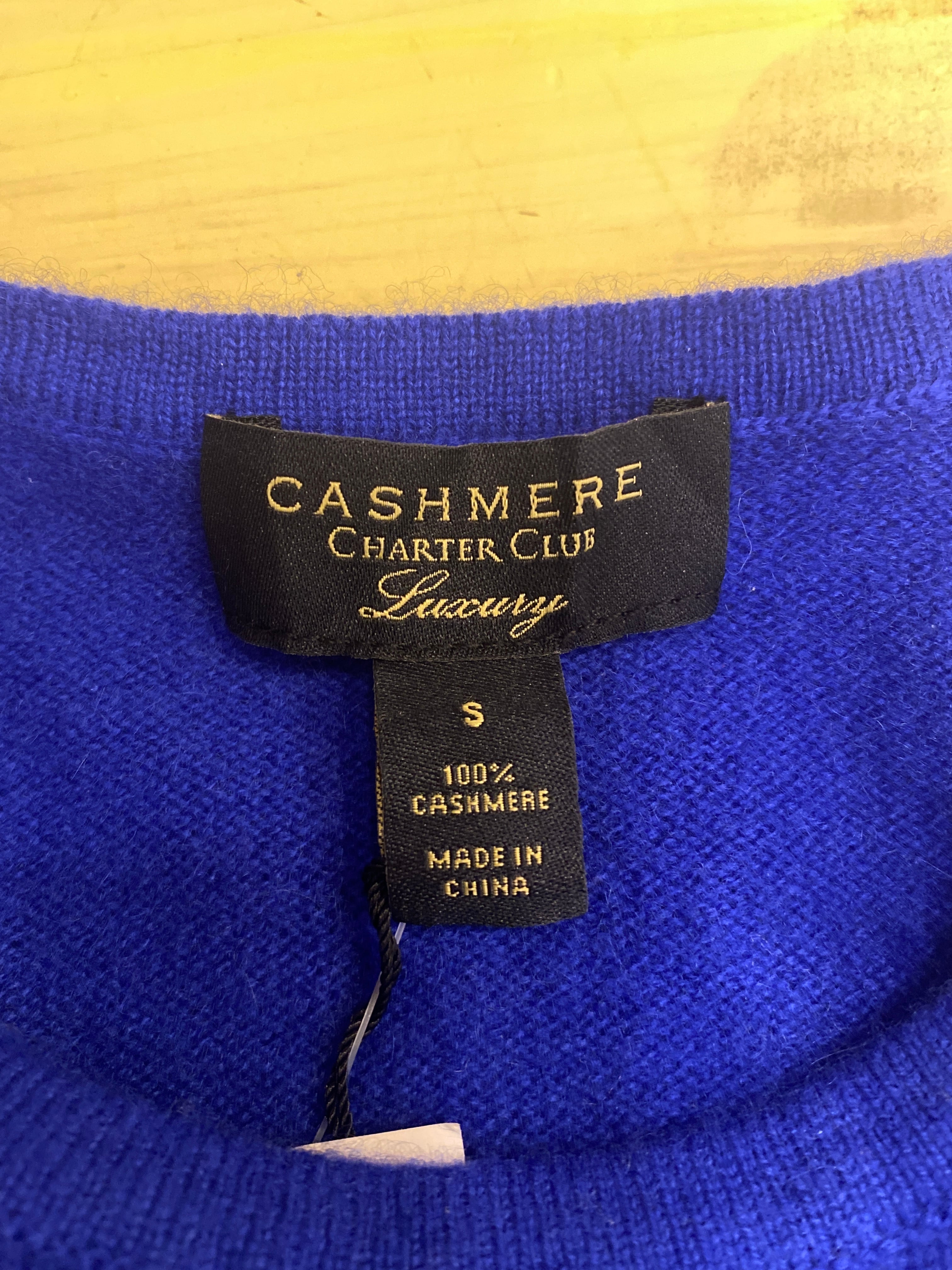 目を引く鮮やかなブルーのカラーが可愛いセーター。