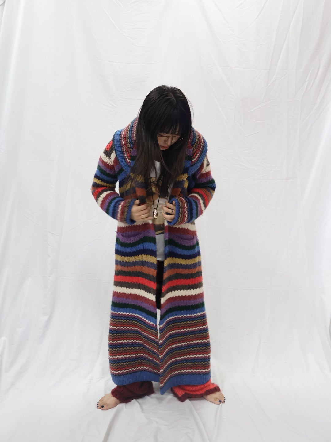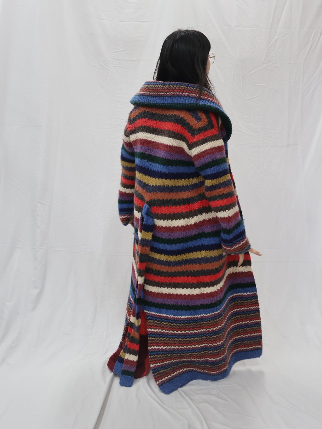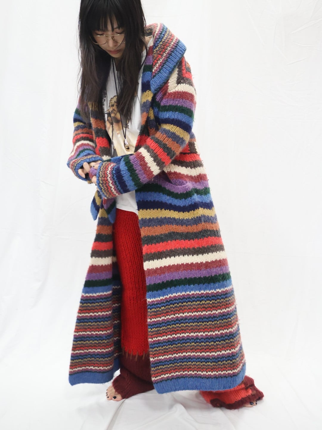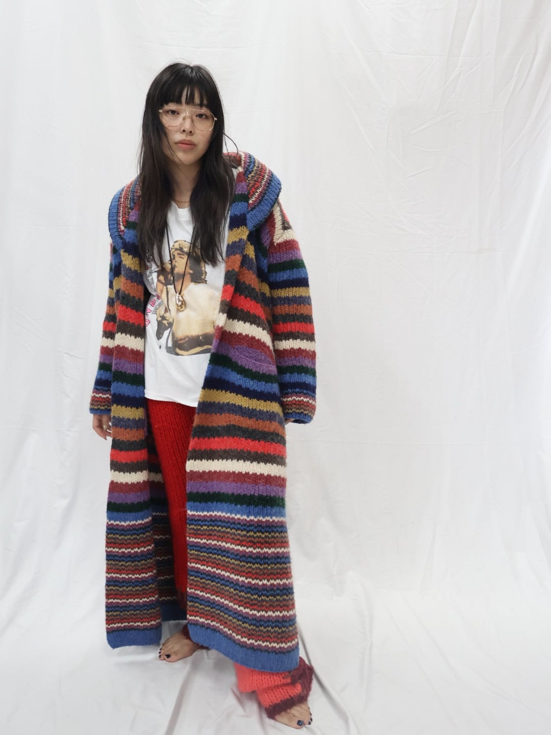 ざっくりと編まれたハンドニットでしっかり重さがあり暖かい一着。