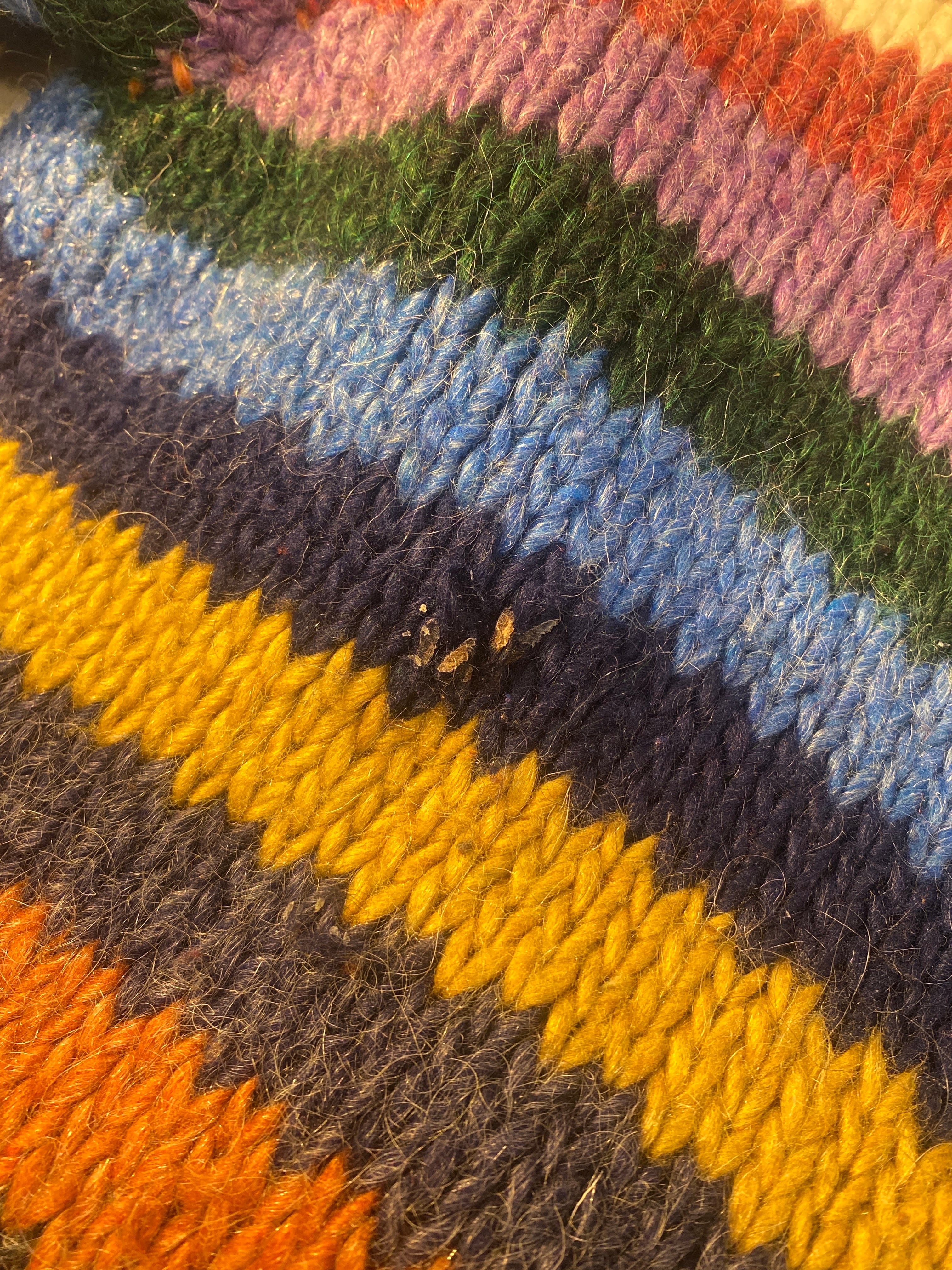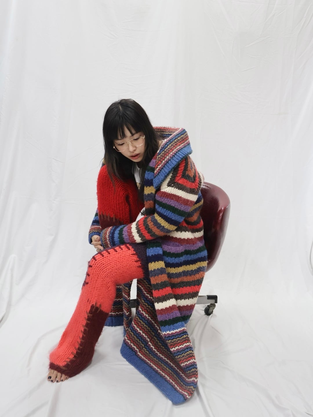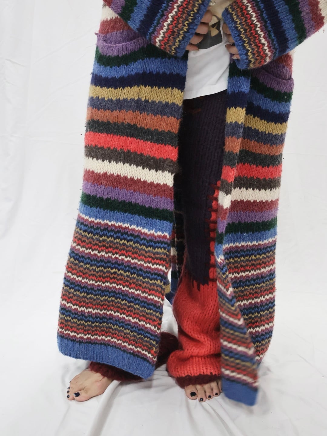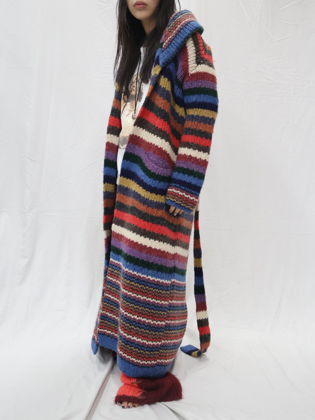 ざっくりと編まれたハンドニットでしっかり重さがあり暖かい一着。