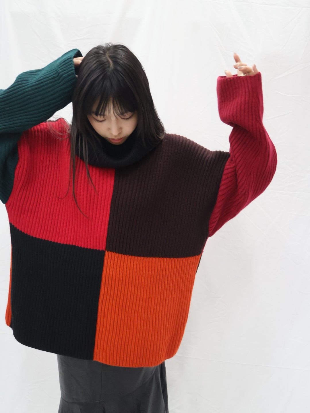 ボリュームのあるネックや、長めの袖丈など、パキっと映えるカラーとは裏腹に、ゆるい雰囲気で着られるバランス感が◎
