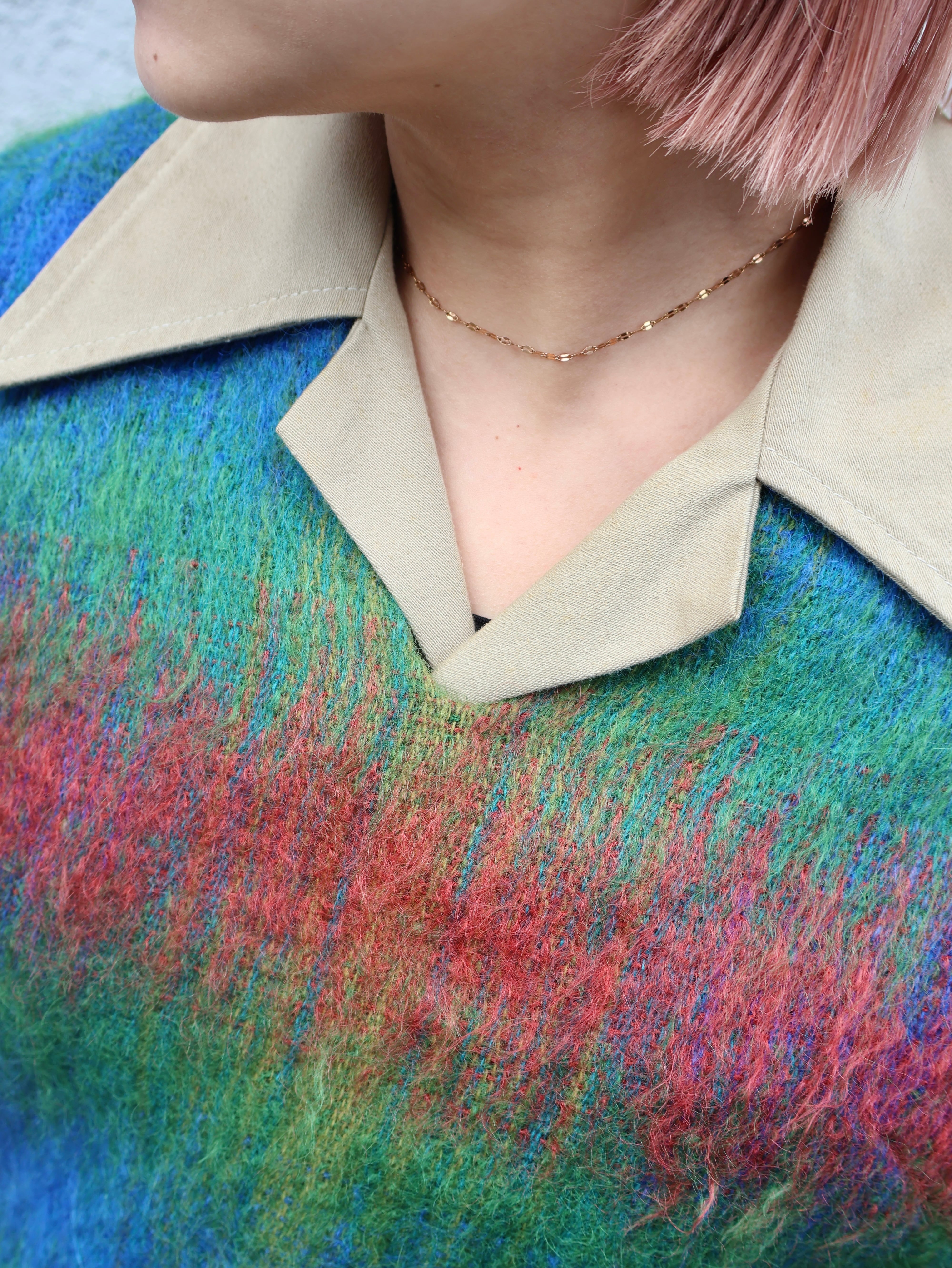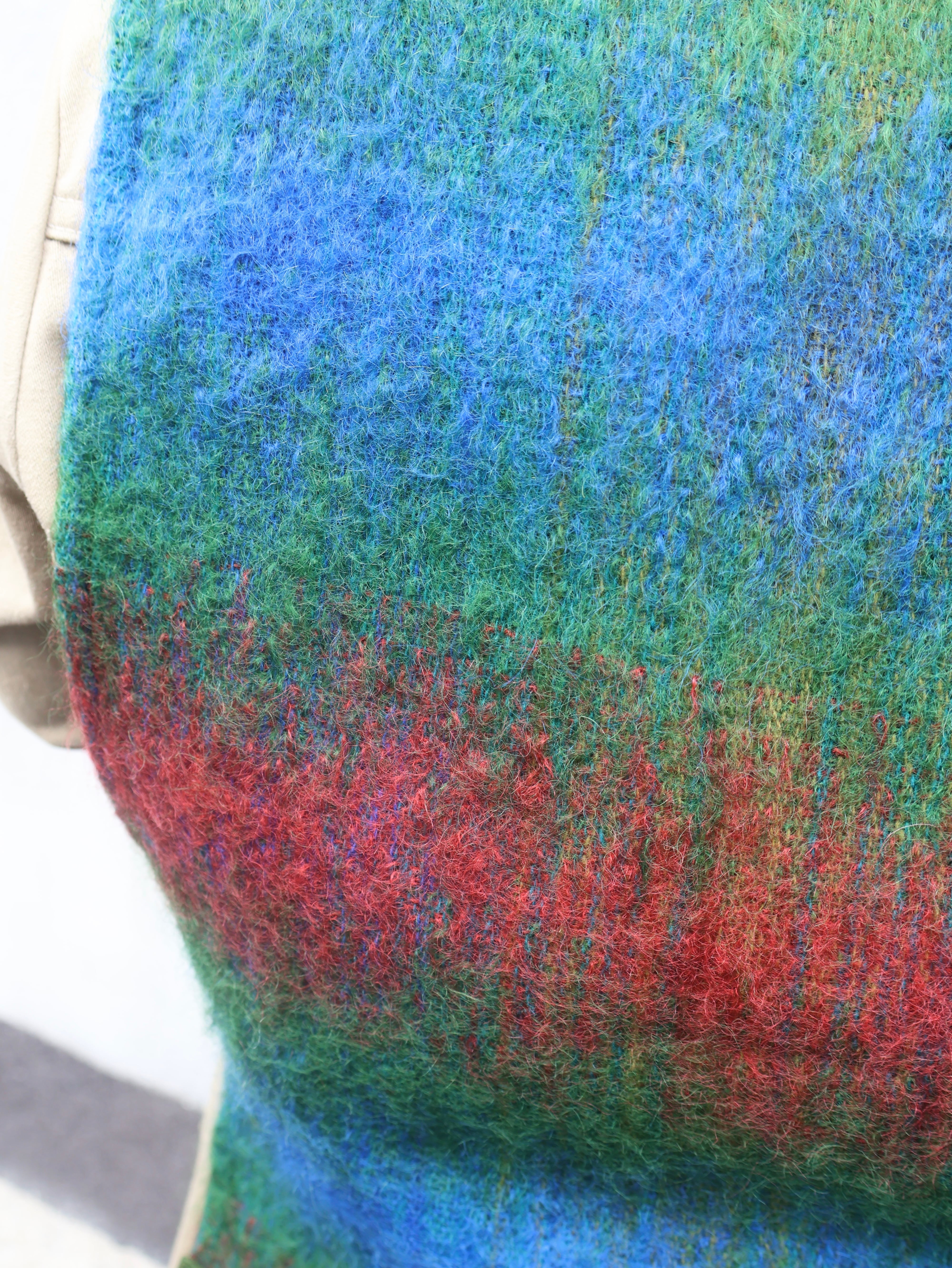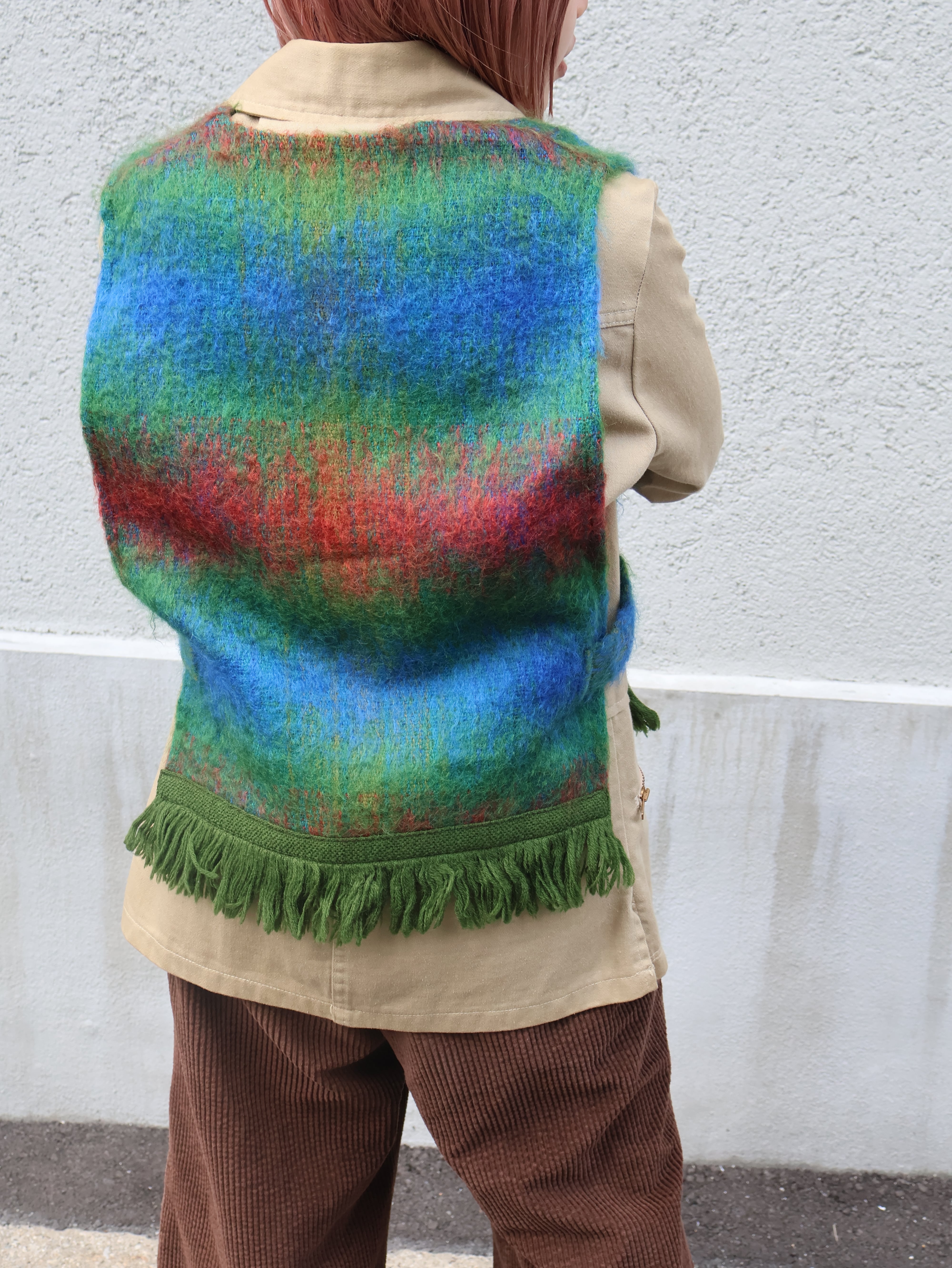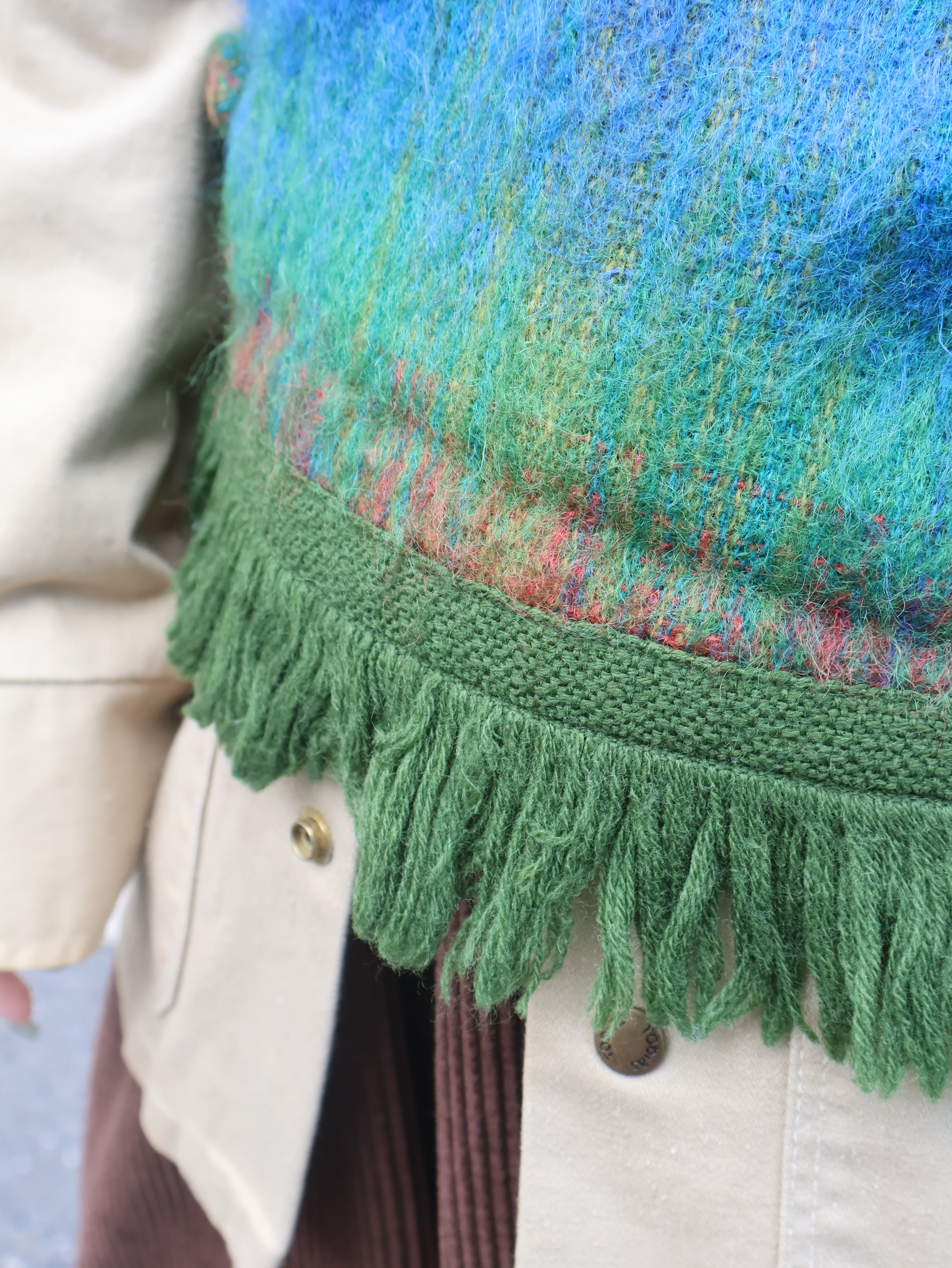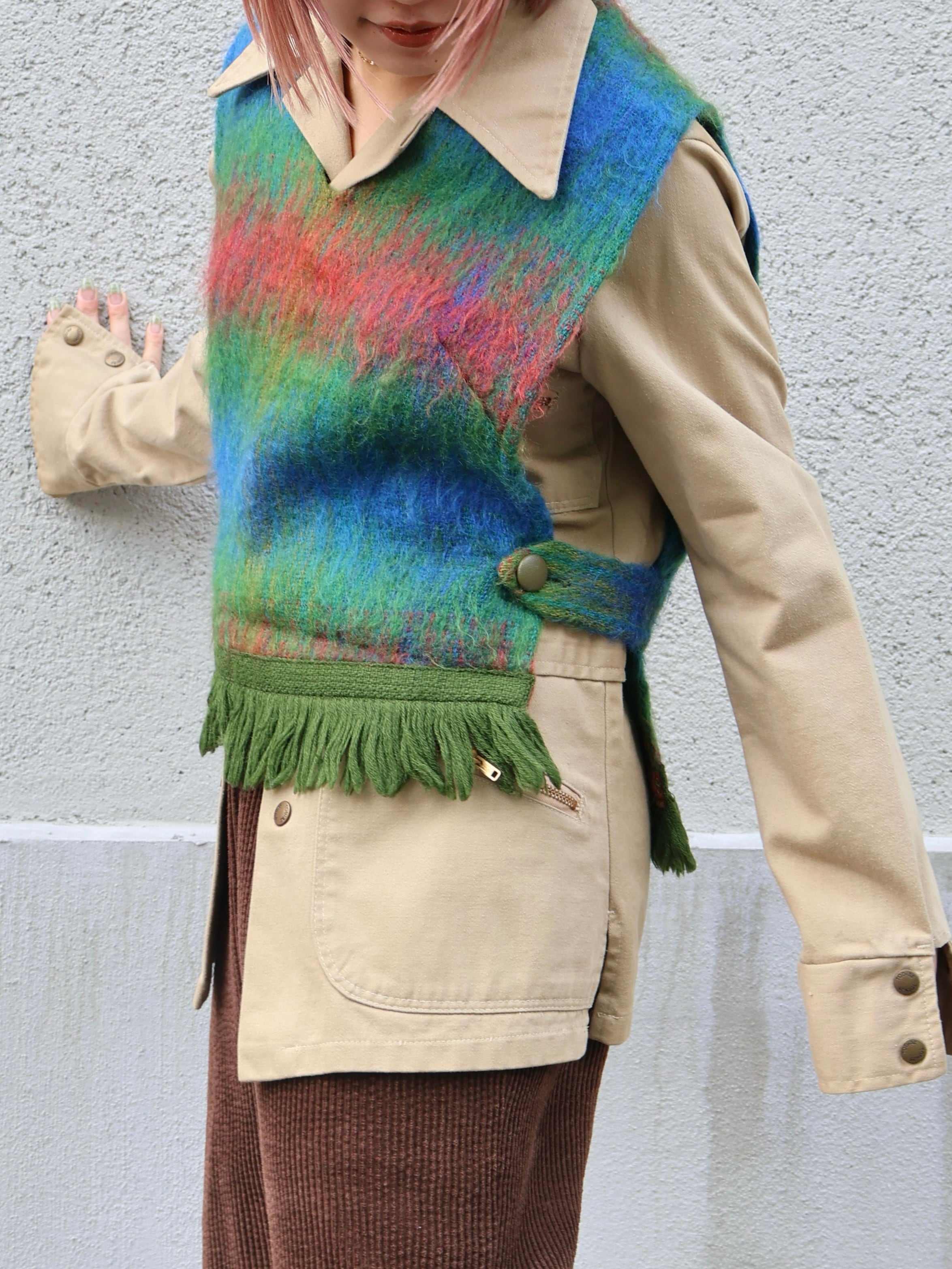 なんともいえないグラデーションのカラーといい、フリンジやその他のデザインといい、一枚でエッジの効いた一着かと◎