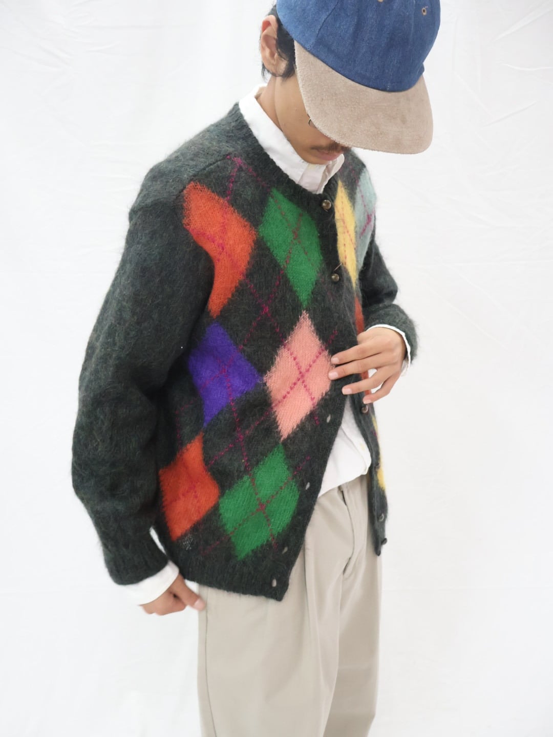 ベネトンから、イタリア製のモヘアカーディガンが入荷。鮮やかなカラーのアーガイルパターンが、冬らしくスタイリングを彩ります。