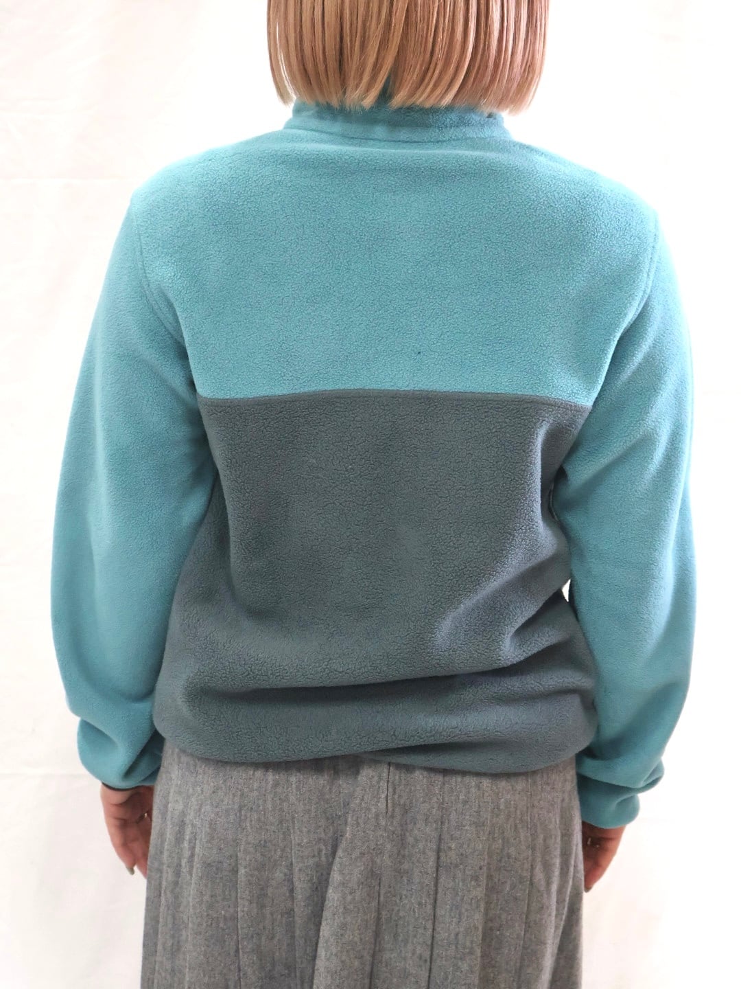 背面(ライトブルーの部分)にフリースが破れた跡あり。