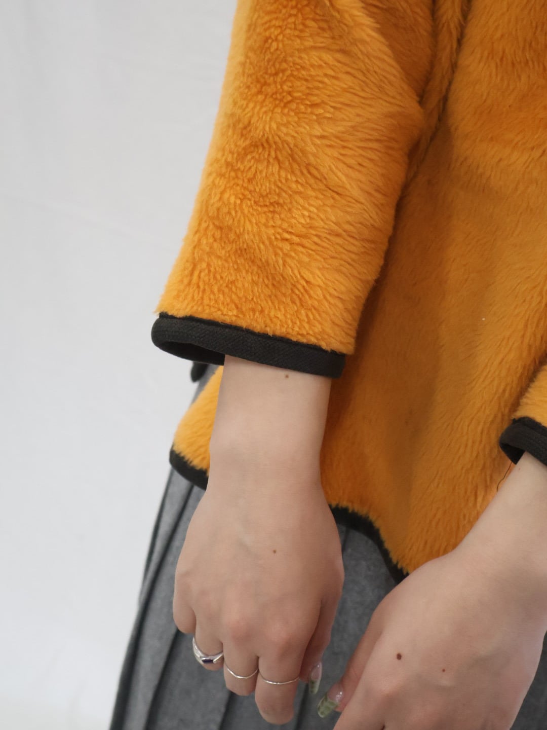 ファーフリース素材なので薄手で軽く暖かい一着。