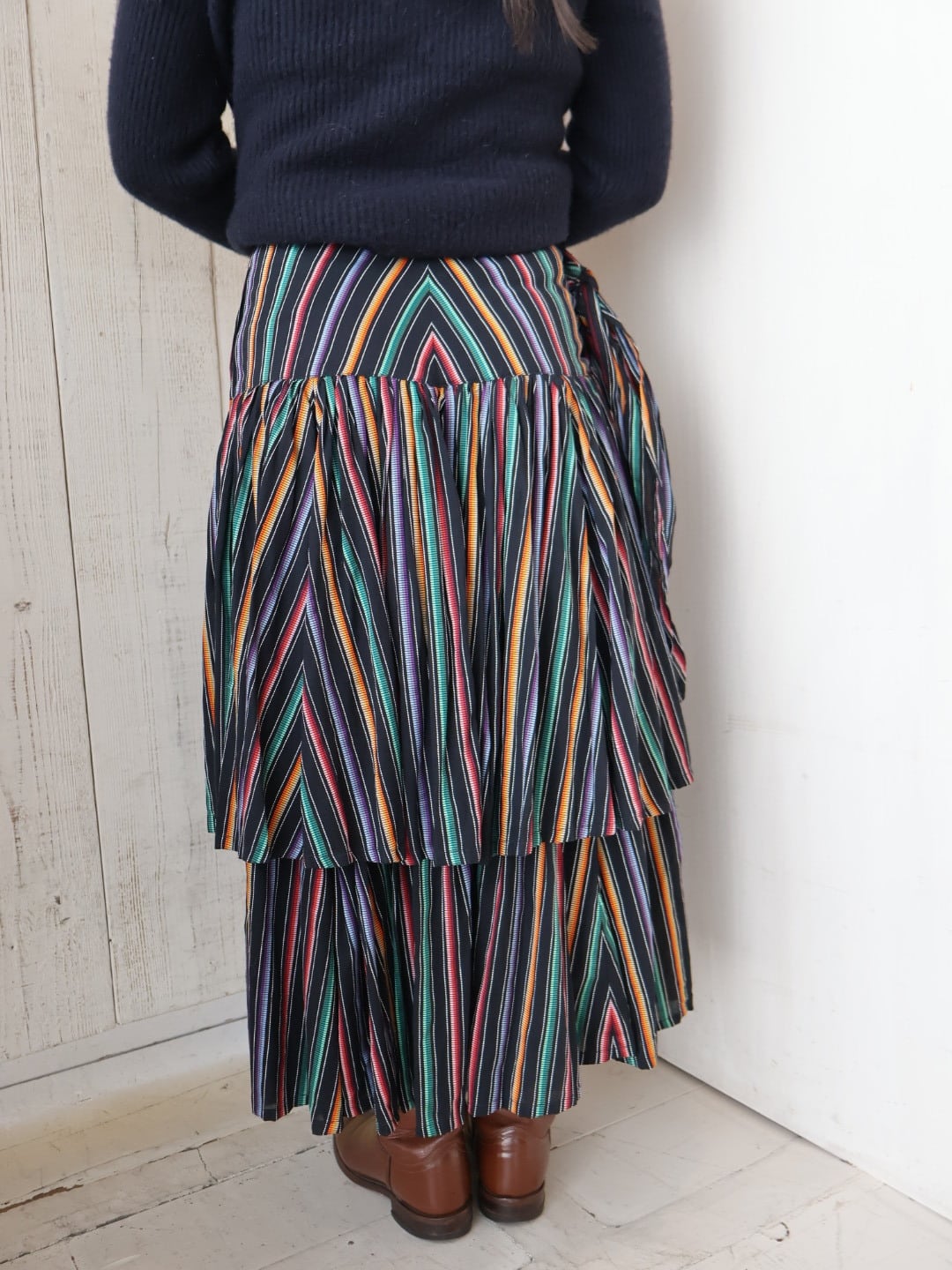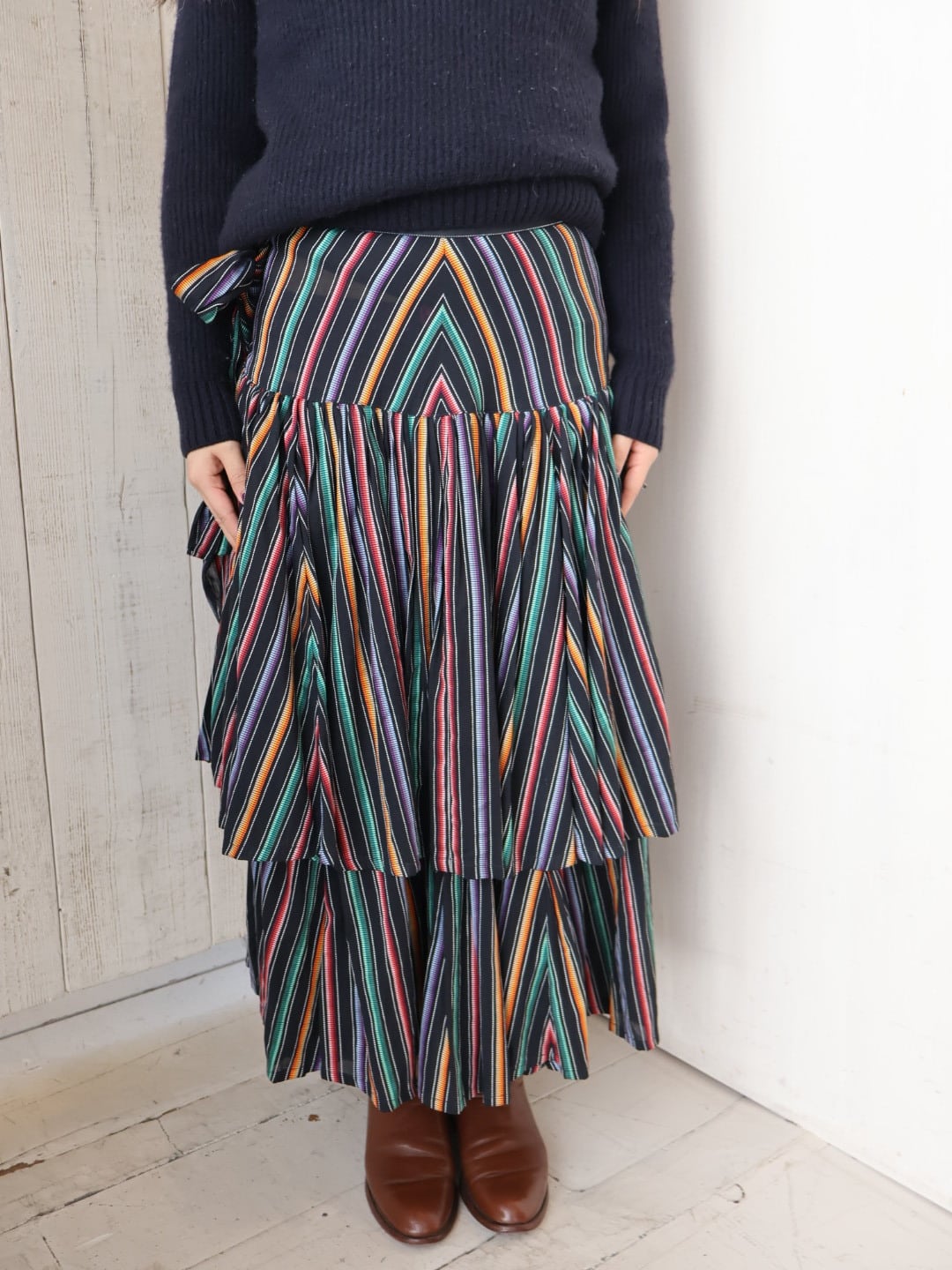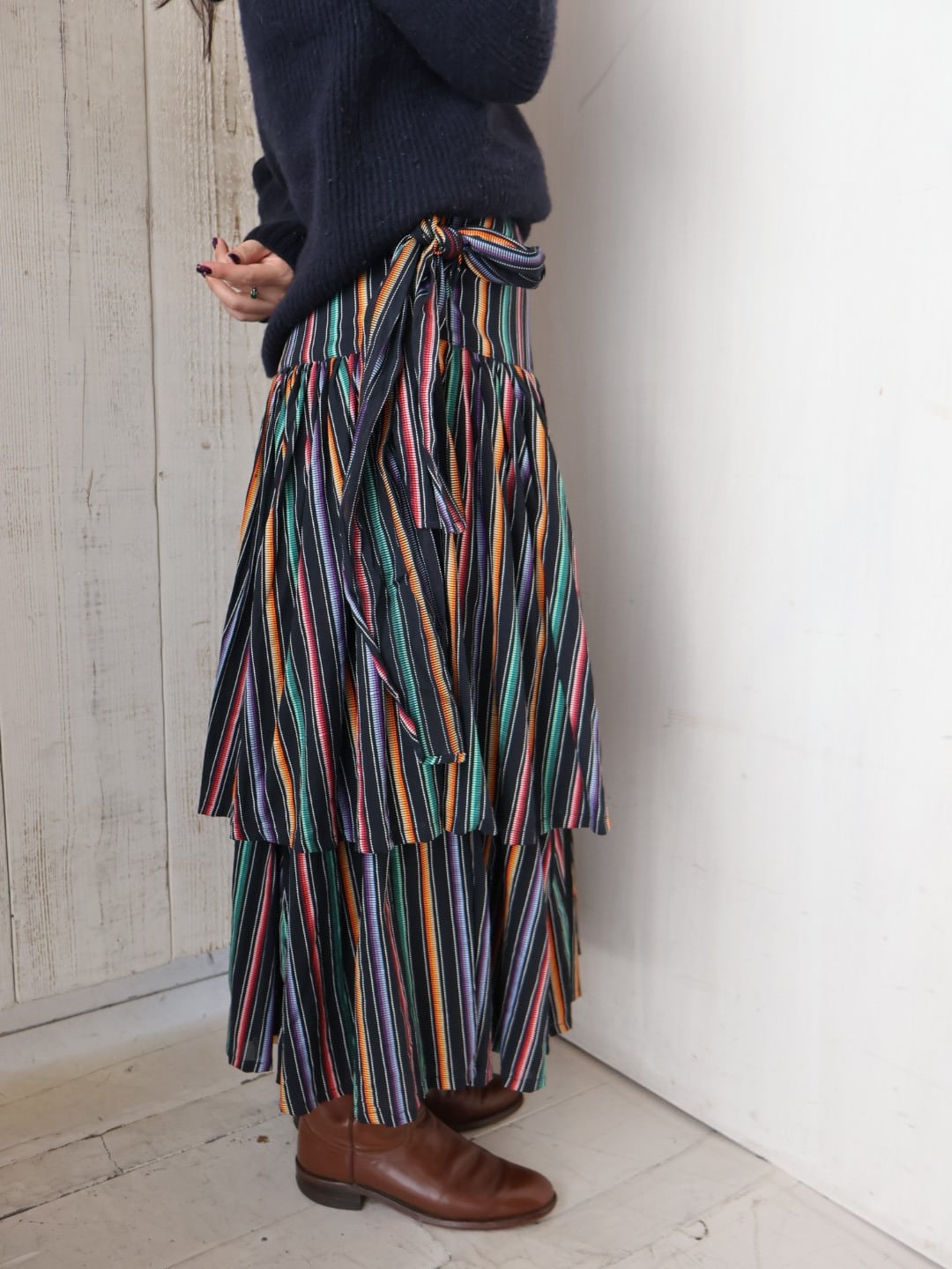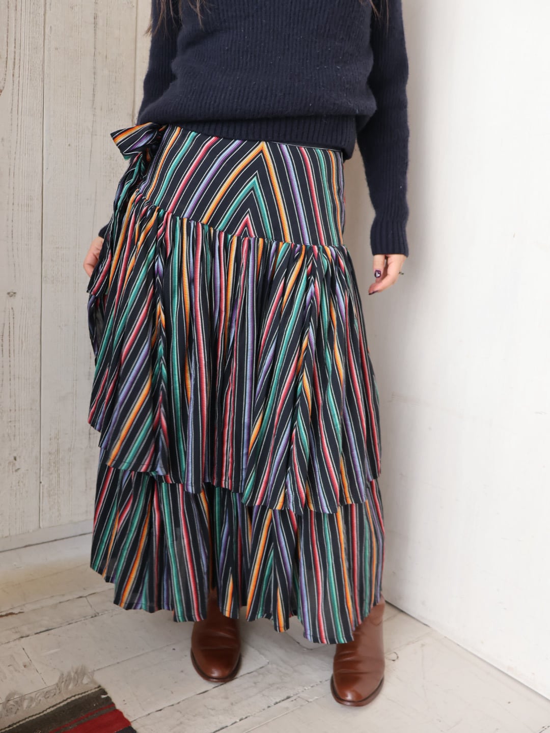 ネイティブの織り柄を彷彿とさせる、マルチカラーのストライプが特徴的なスカート。