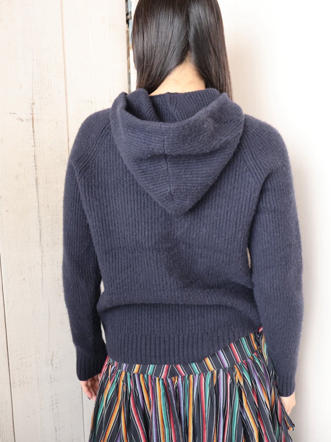 カシミヤ リブ ニット フーディー