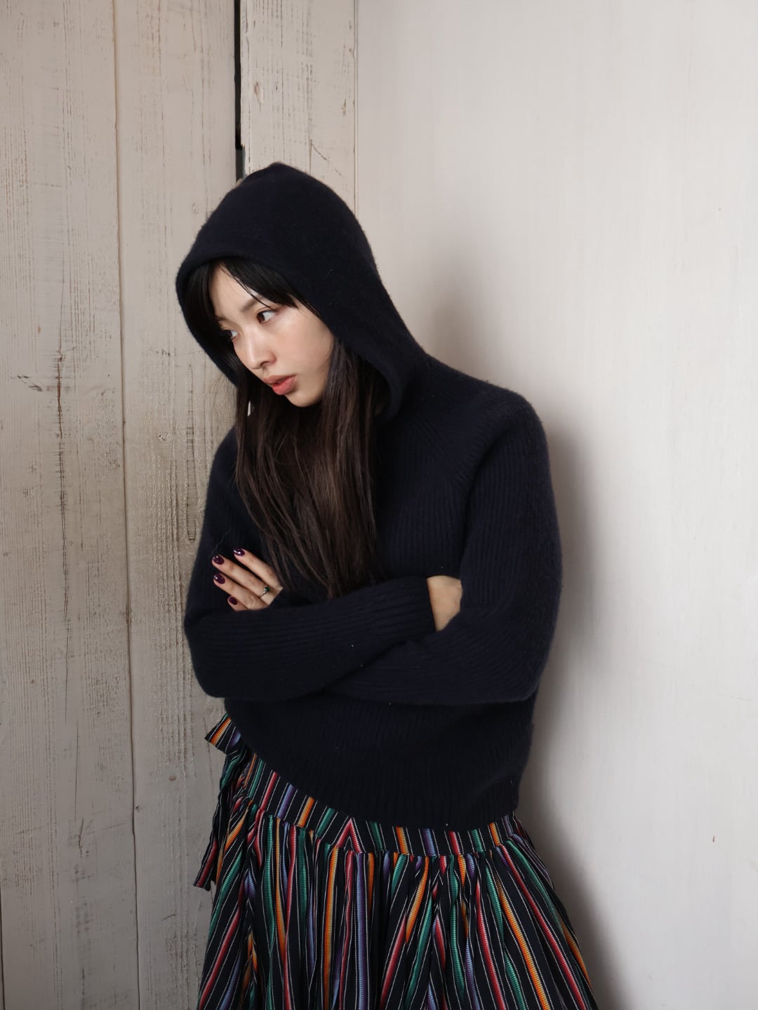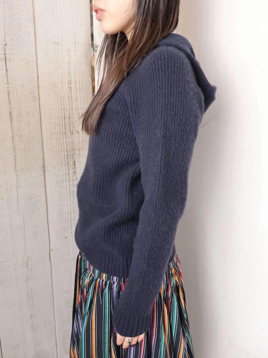 cashmere rib knit hoodie【1813】