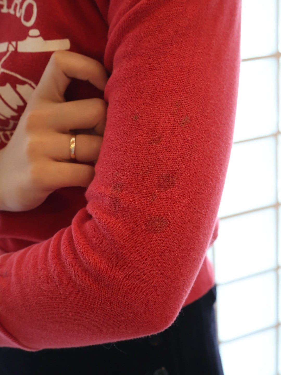 左肘、左袖口に汚れあり