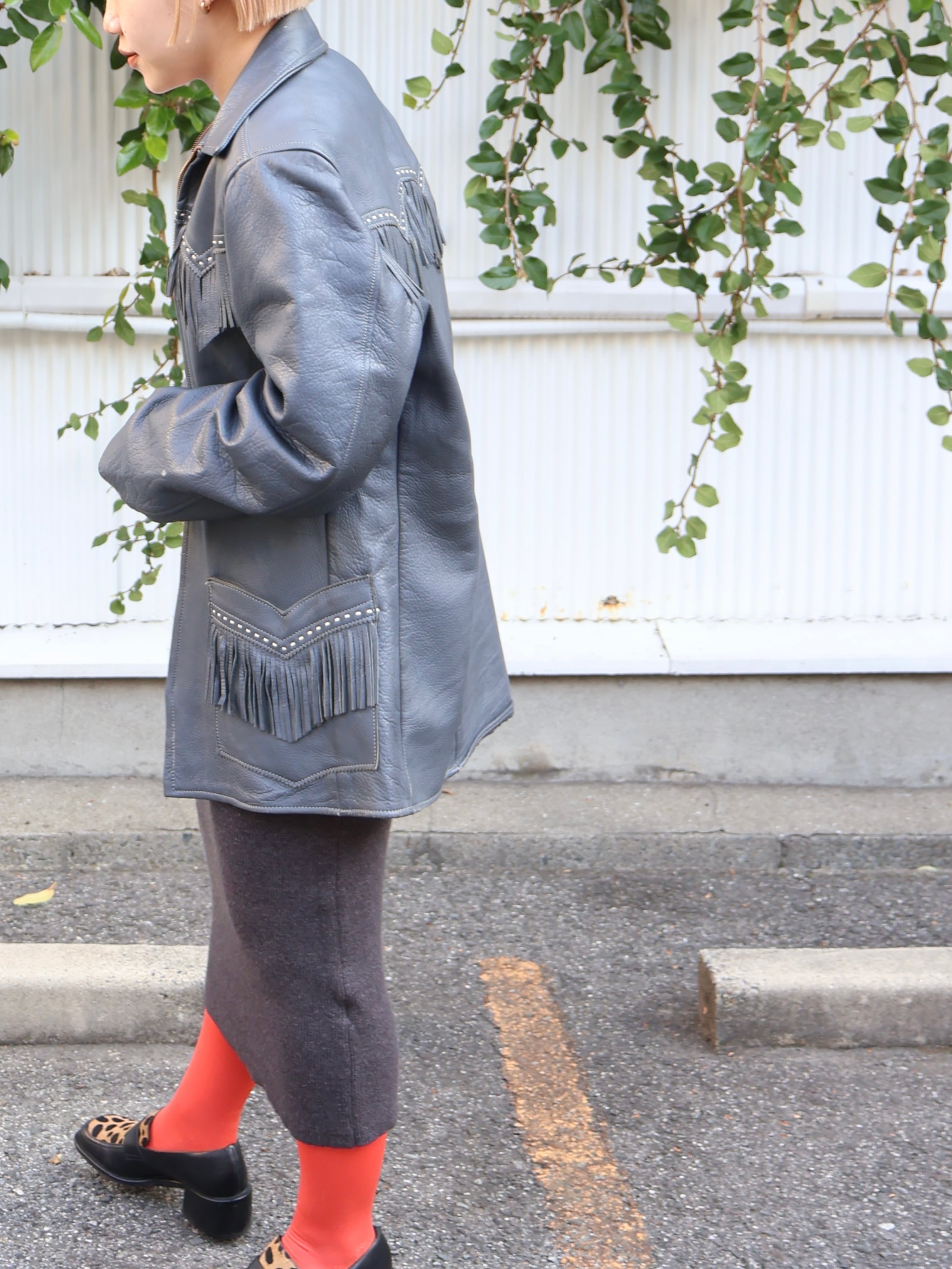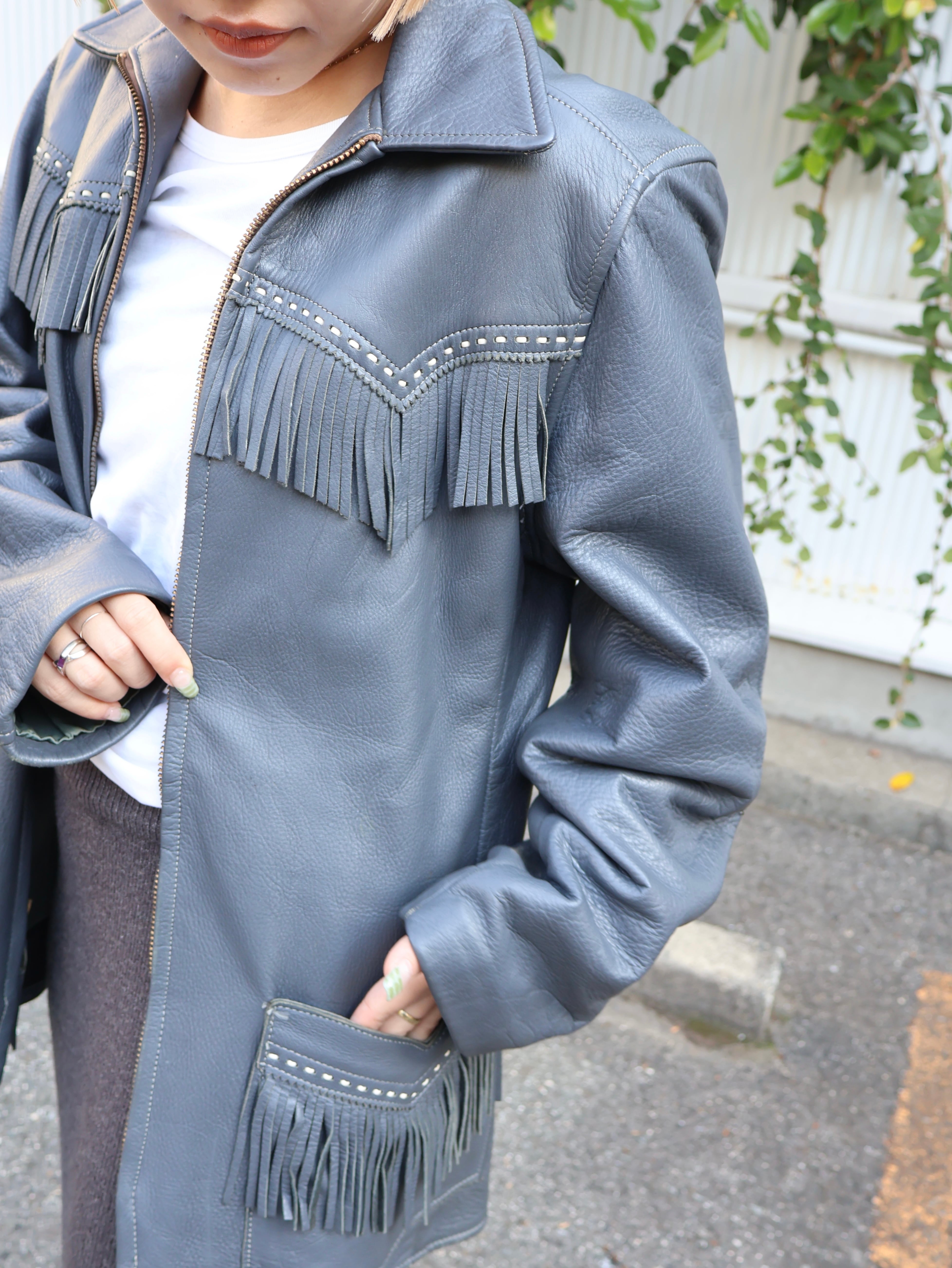 70s fringe leather jacket【1902】