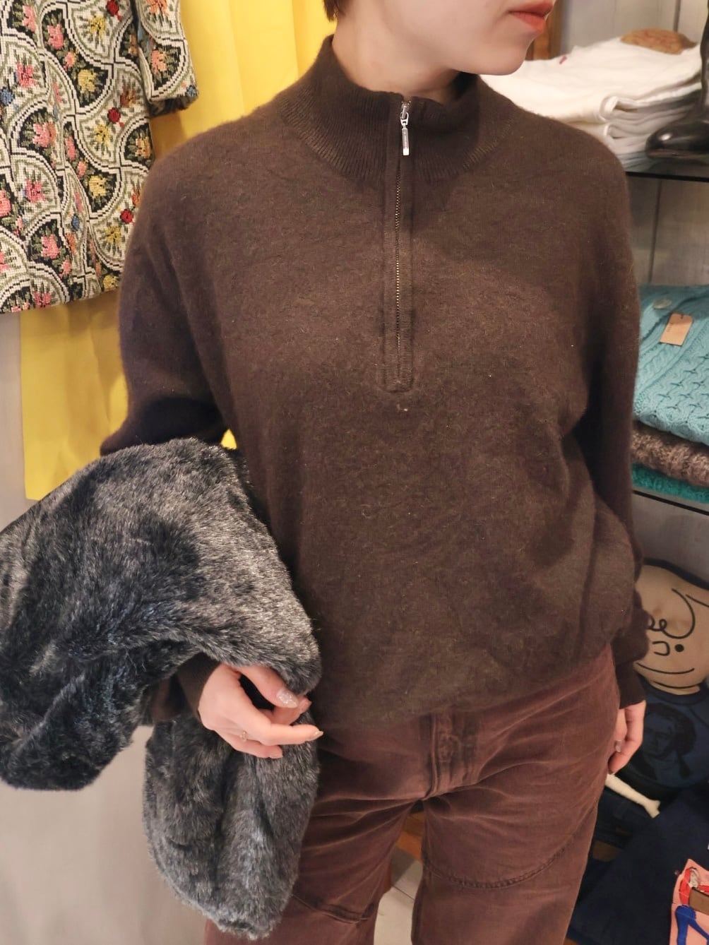 カシミヤ素材で、着心地の良いハーフジップニットが入荷。