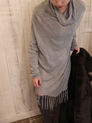 fringe design high neck knit sweater【1917】