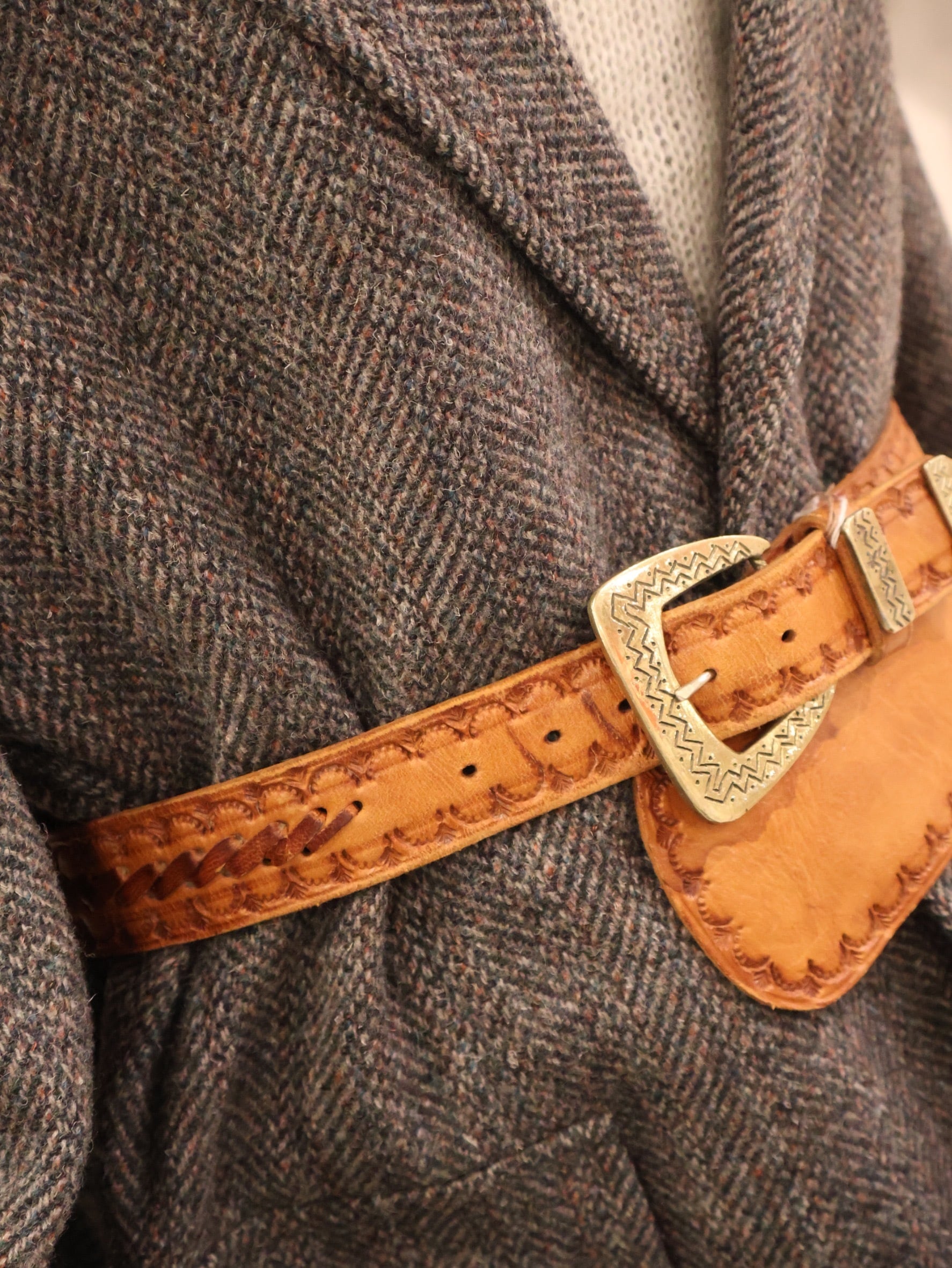 ジャケットやニットの上から、ウエスト部分につけるのはもちろん、スカートスタイルの時は腰骨あたりのローな位置にプラスしても。
