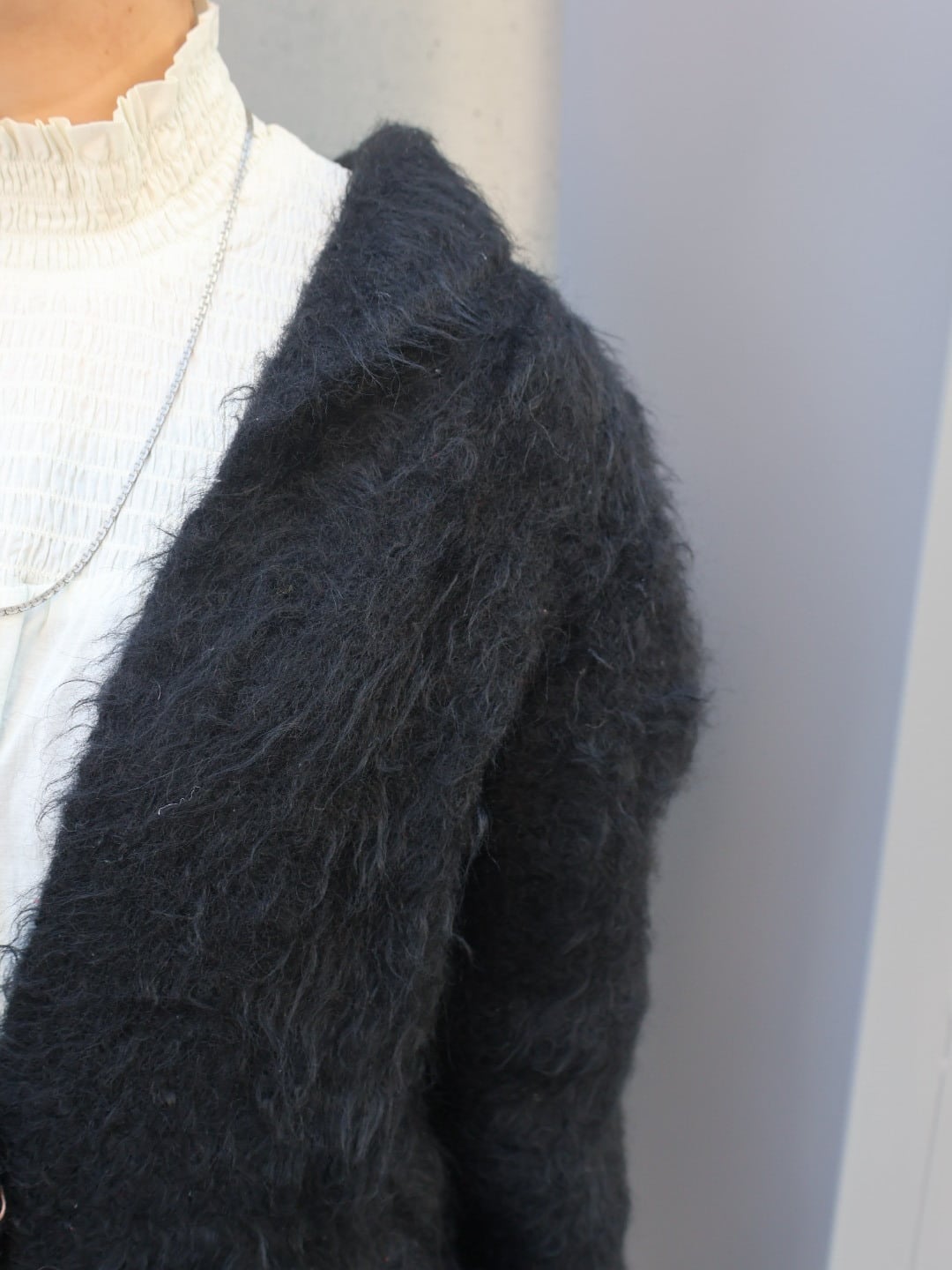 モノトーンカラーなので、柄のボトムスやエッジの効いたボトムスアイテムとの相性も抜群かと。