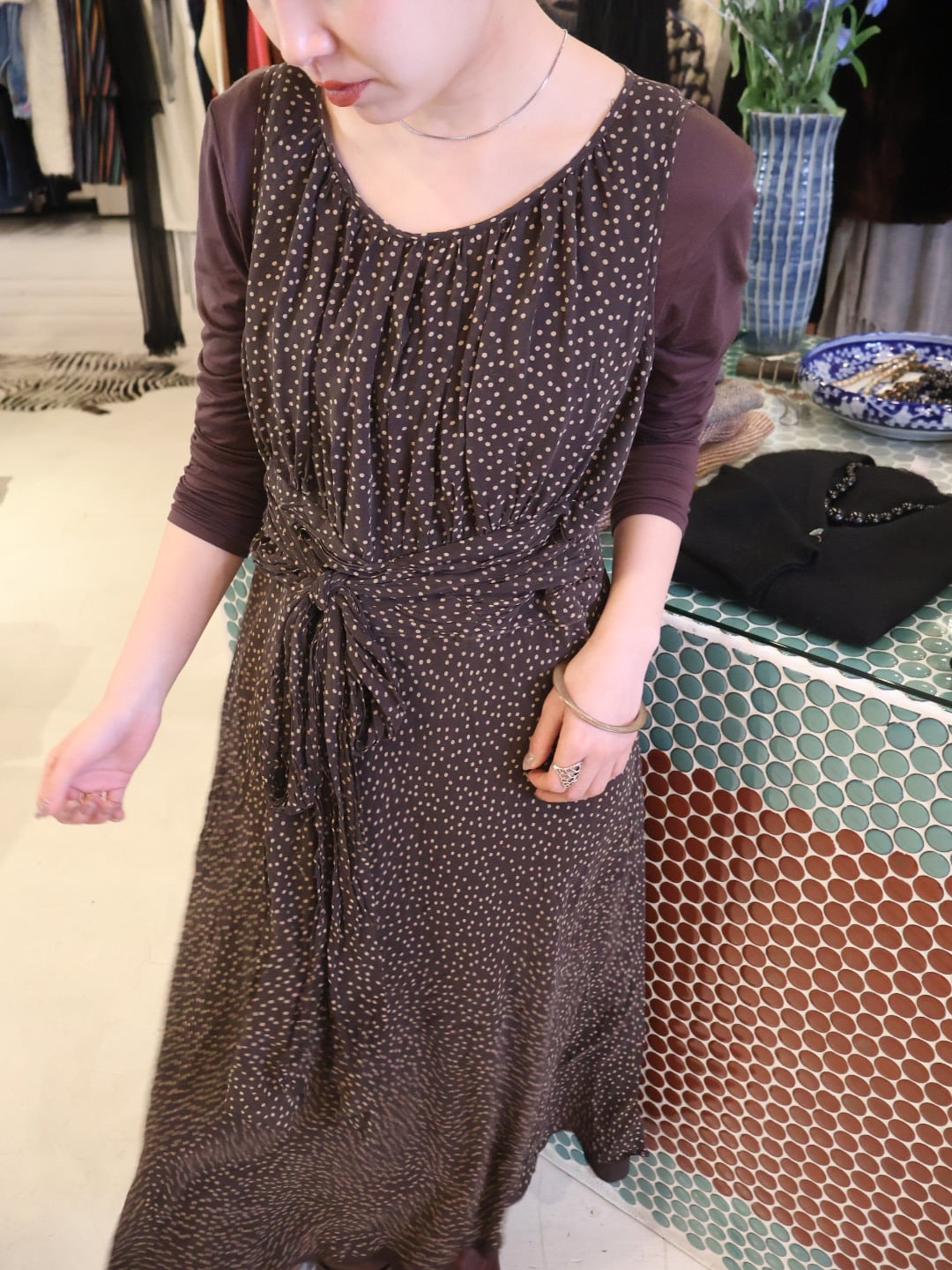 ポルカ ドット シルク ドレス