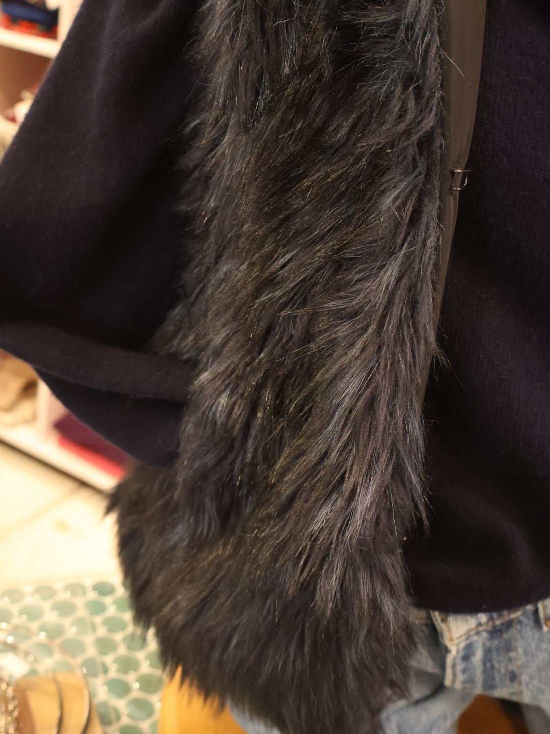 毛足長めで存在感はありつつ、キッズサイズとコンパクトな作りで、ゴージャスになりすぎず、バランスのとりやすい一枚。袖幅など、あまり広くはありませんが、タイトなシルエットが女性らしく見せてくれます。