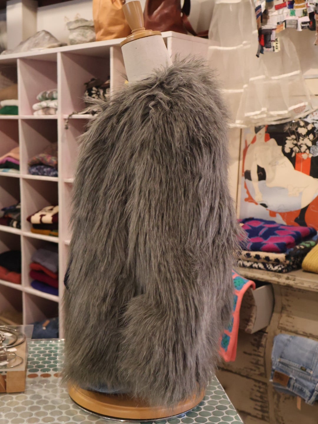 毛足長め、ボリュームたっぷりのフェイクファージャケット。