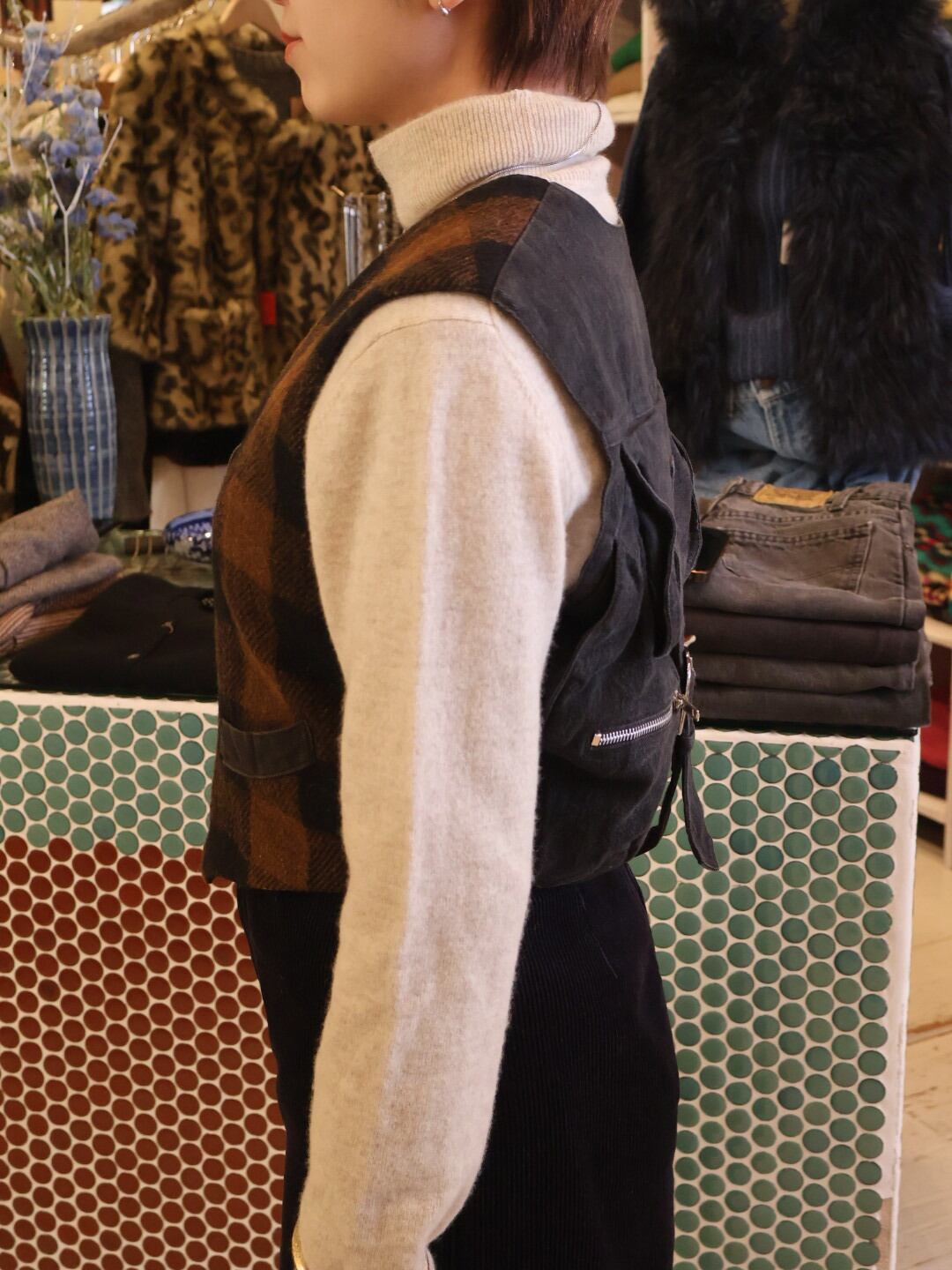 ダメージではございませんが、フロント部分に糸混じりにより色味の異なる箇所がございます。